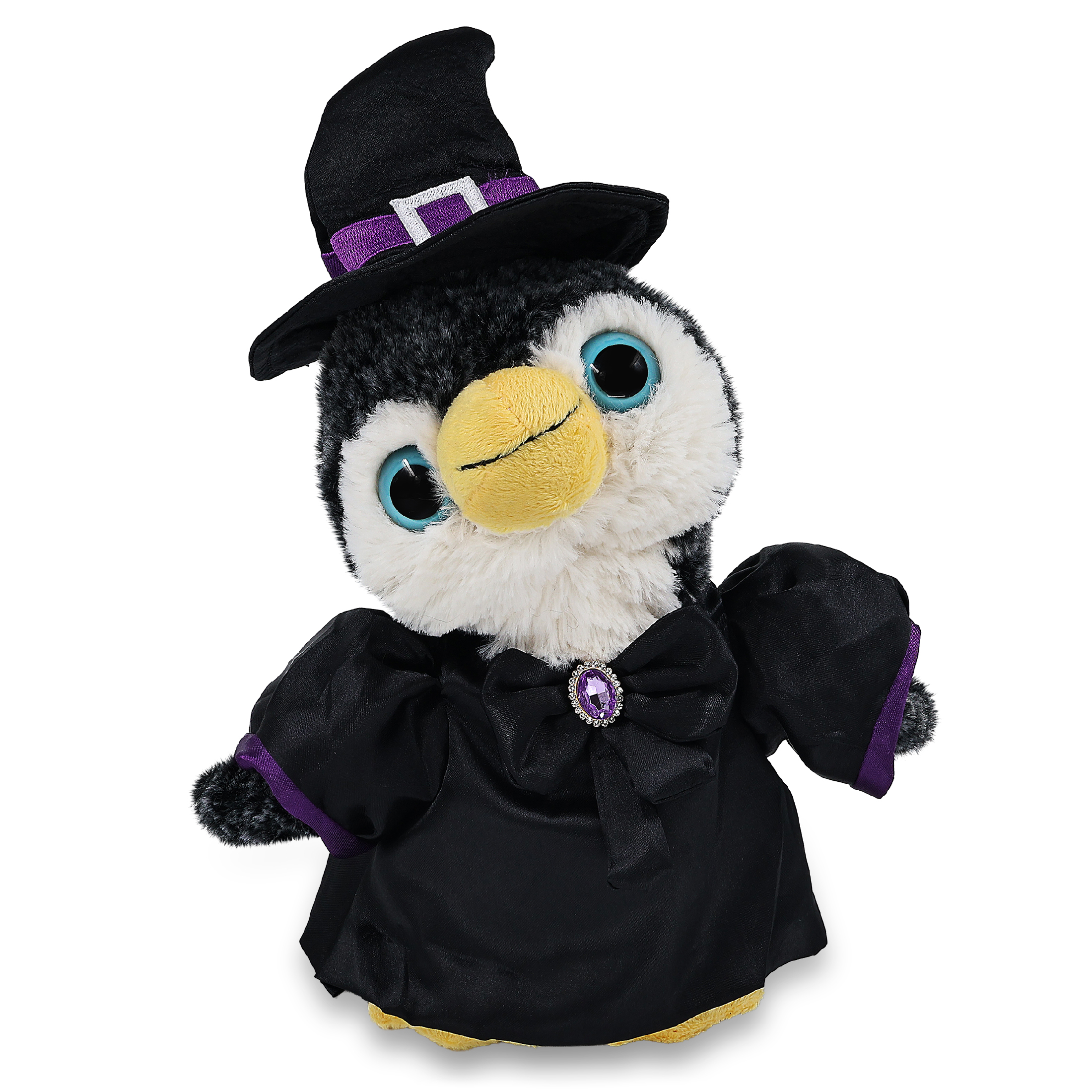- Includes 1 DolliBu Penguin Toy Dressed in Witch Costume – The plush teddy bear arrives with a witch stuffed animal costume. The witch stuffed penguin toy features a black witch dress up set with intricate purple details and black bow with gem. The perfect teddy bear plush to add spooky vibes to a display, along with your other Halloween stuffed animals. A cute stuffed animal for anyone ages 3 and up who is looking for a cute penguin figure.