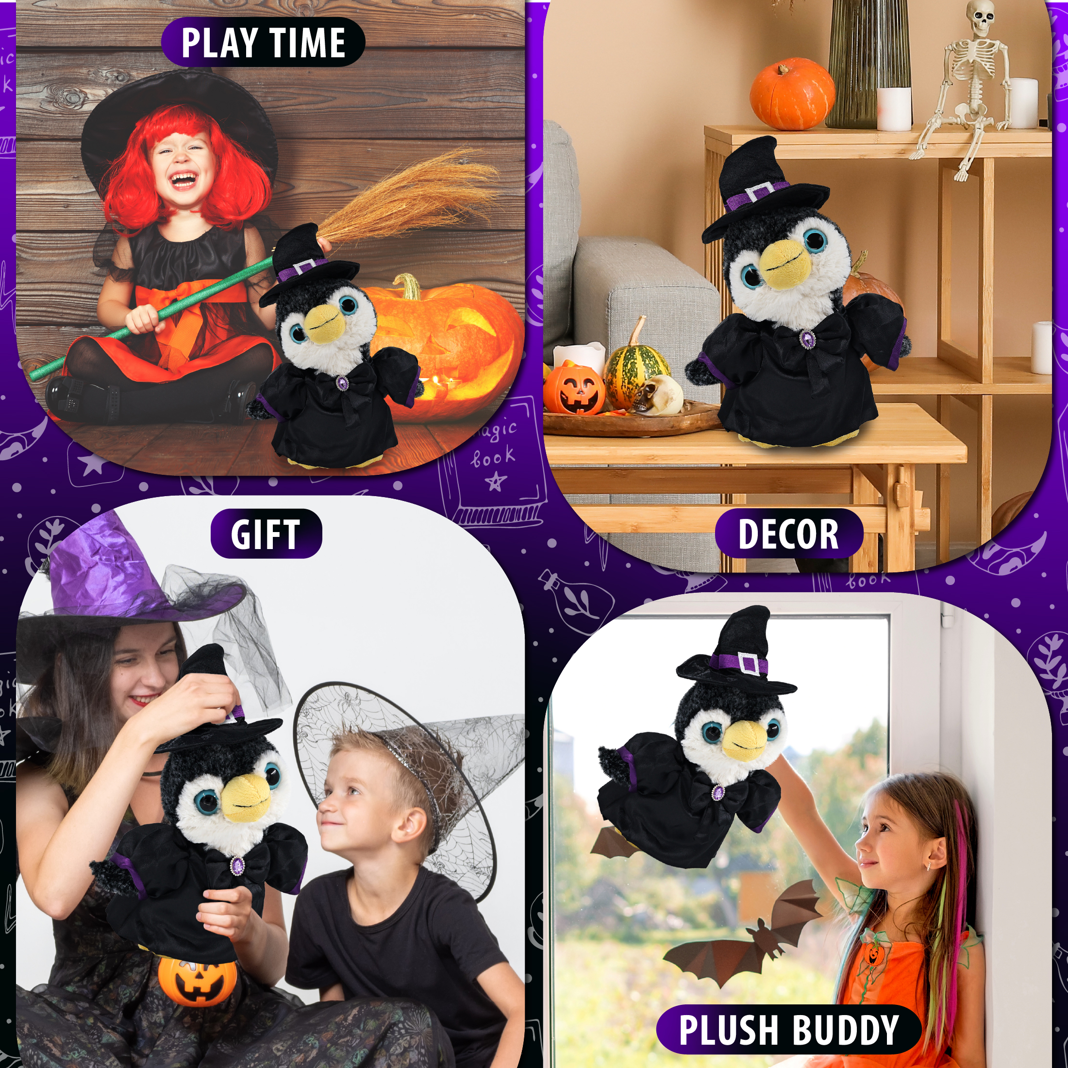 DolliBu Penguin Stuffed Animal with Witch Costume and Personalization – Cute Wildlife Animal with Black Cloak and Witch Hat Outfit – Spooky Halloween Plush Toy for Kids – 8 Inches