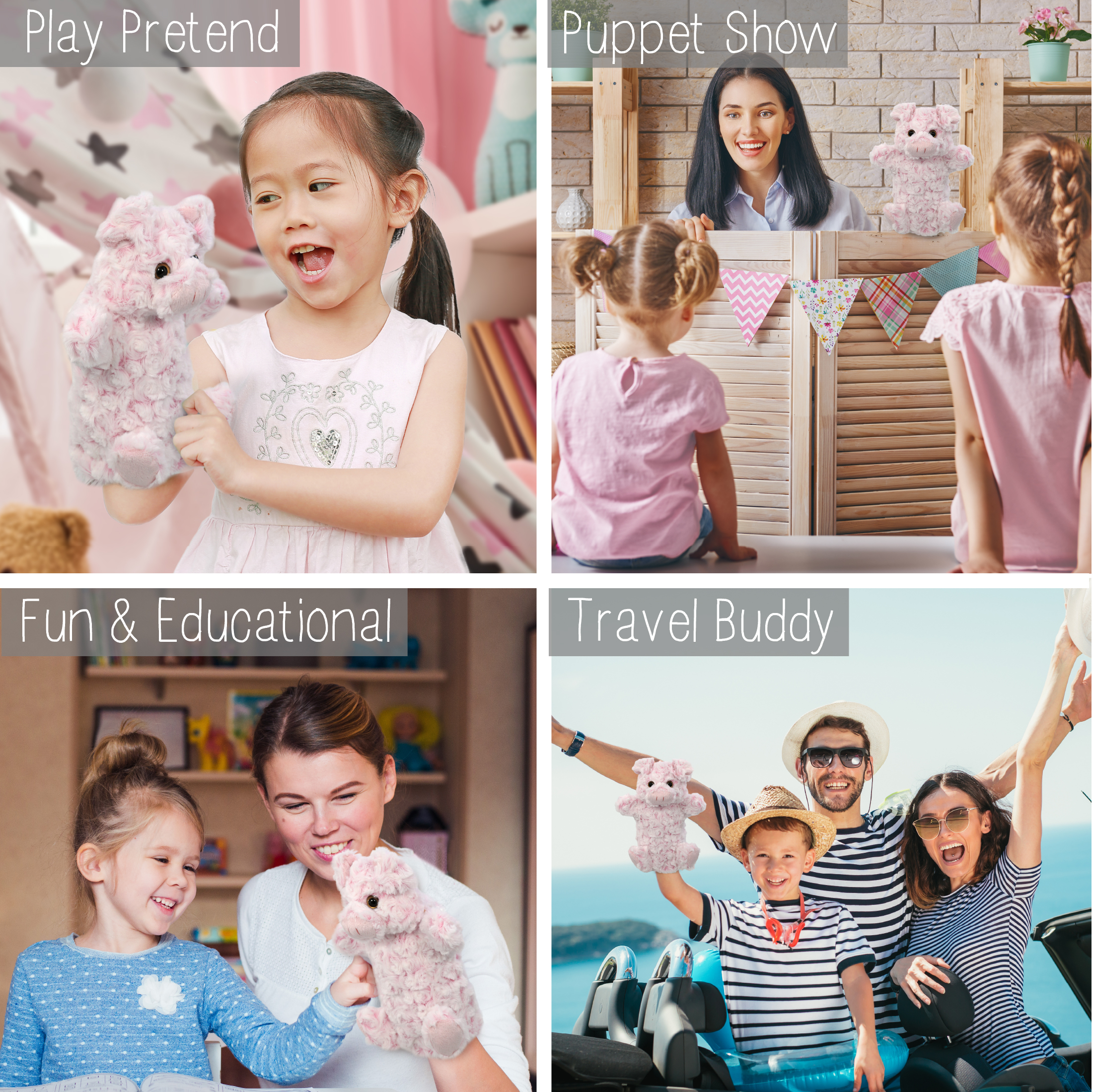 - Perfect Animal Hand Puppets for Kids – The friendly pig animal puppets for toddlers 1-3 and up makes a great companion for learning and pretend play. Hand puppet for kids help parents and teachers create fun learning environment for kids. Collectors of hand puppets for adults and kids and pig toys will surely love to add the cute pig plush to their collections, and they make great pig gifts for boys and girls who love puppet animals.