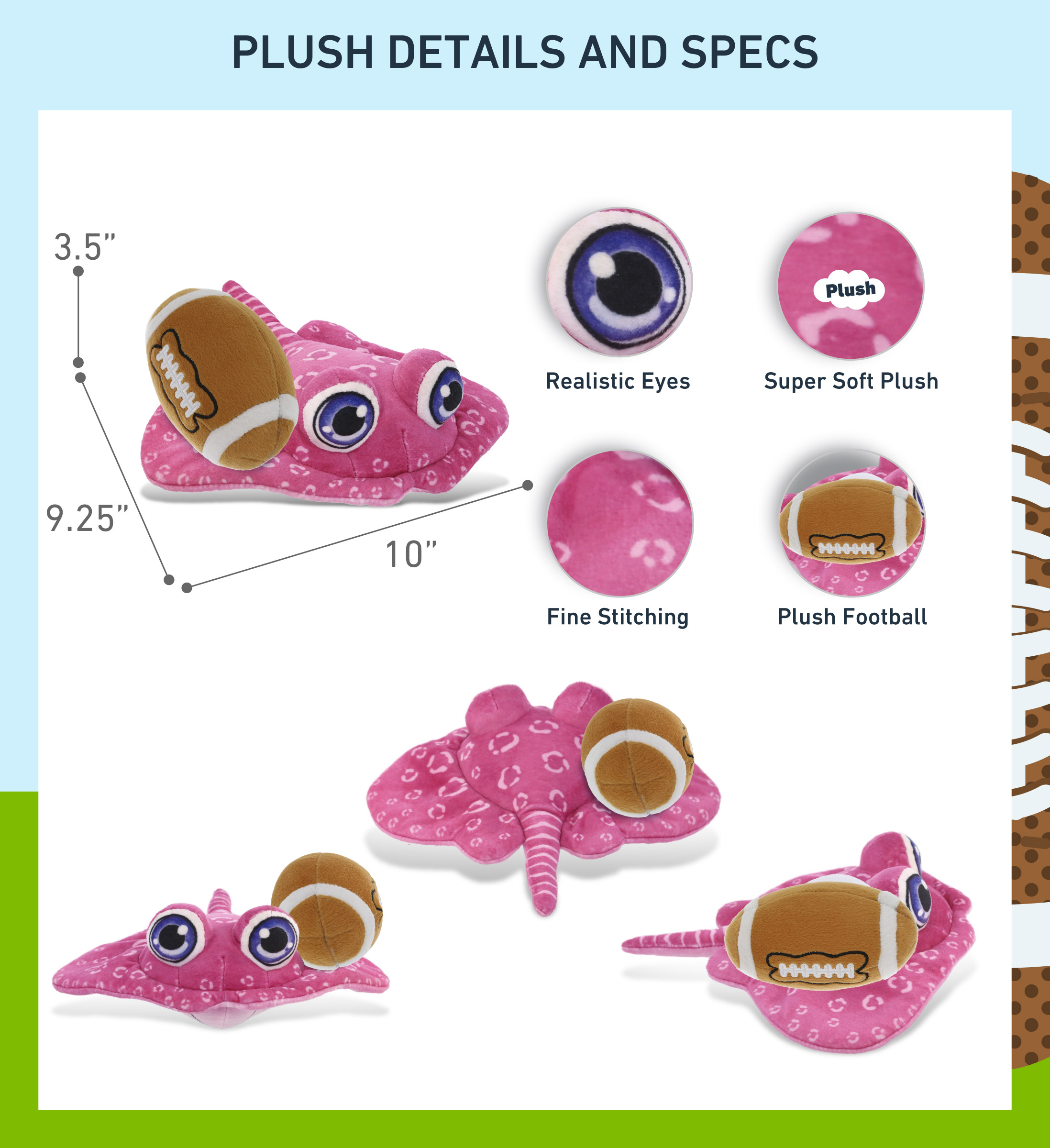 • High-Quality Plush Buddies Pink Stingray Stuffed Animal – The machine-sewn stingray toy plush and football are made of premium-quality polyester, stuffed with soft, fluffy polyester fillings. Made with durable and child-friendly features. Cute and snuggly stingray plush toy. Cute, soft toys designed to be your little one’s best buddies. To maintain fluffy stuffed animals, wash plush toys with cold soapy water and allow them to air dry.