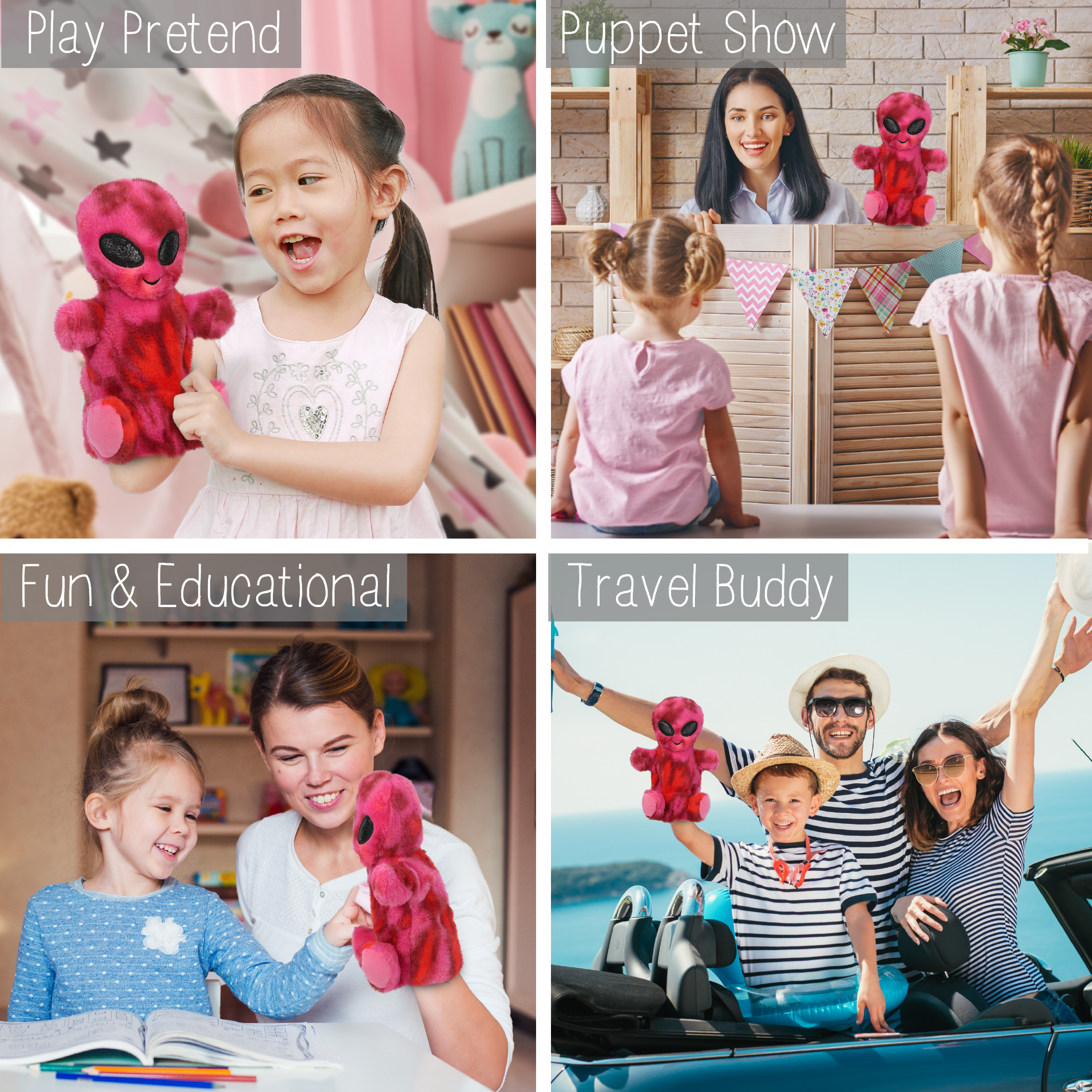 • The Stuffed Toy Puppet Is For Kids Who Love Space Aliens – Alien puppet toys are great companion and entertainment toys for little kids during learning and imaginary role-play. Puppets may help parents and teachers provide an interactive learning style for children and students. Teachers can decorate classrooms and playrooms with puppet aliens. Kids will love to have a doll as their go-to friend when they feel sad, scared, or upset.