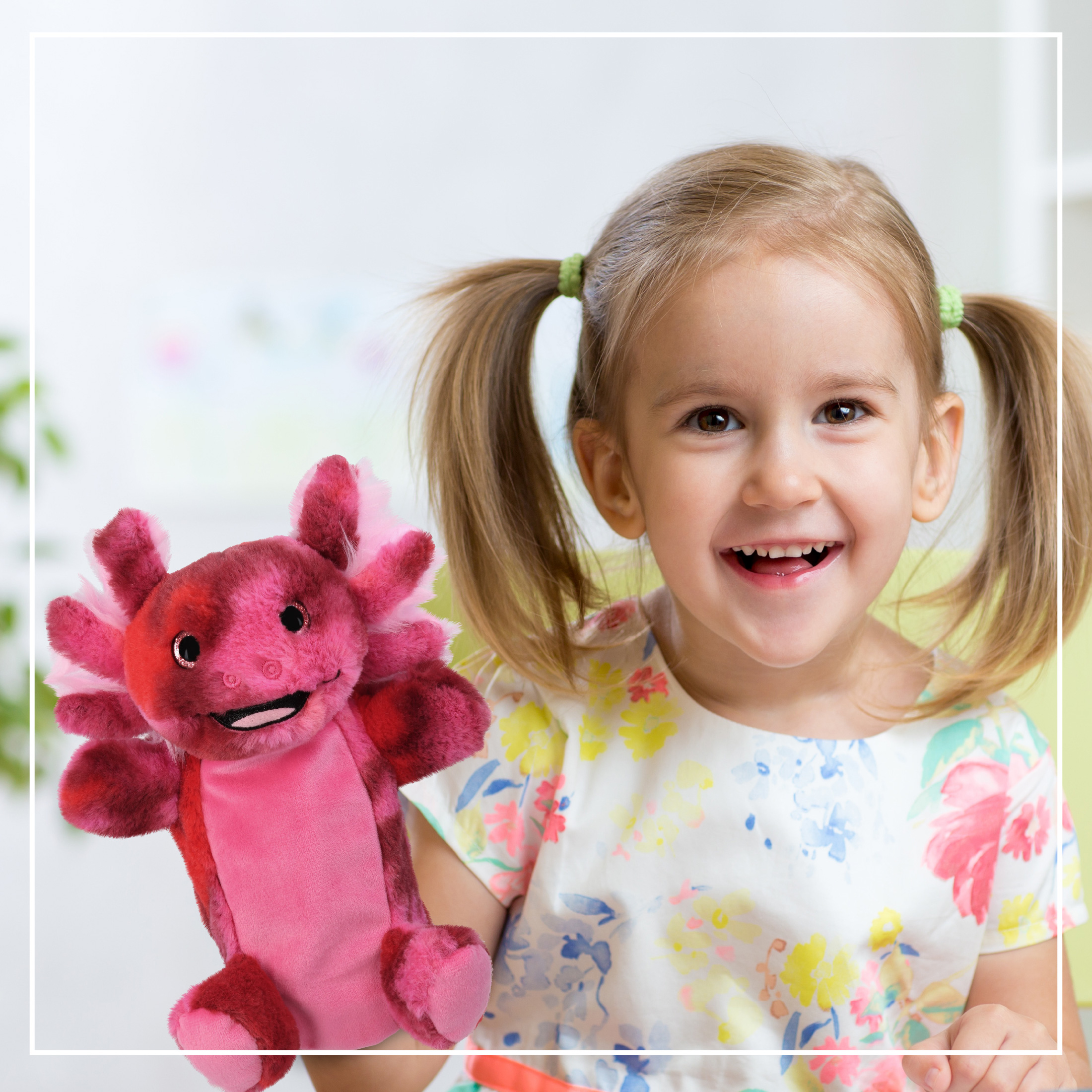 • Measures Approximately 7.5Lx4Wx9H Inches – The DolliBu Axolotl toy hand puppet is perfectly size for kids and adults. Comfortably use the axolotl plush toy hand puppet during story time. This stuffed axolotl fits snugly and allows full control over the axolotl’s head and arms. The axolotl figure puppets are designed for flexibility. Easy to bring in a puppet theater for animal puppet shows or as classroom puppets to teach kids about wild animals.