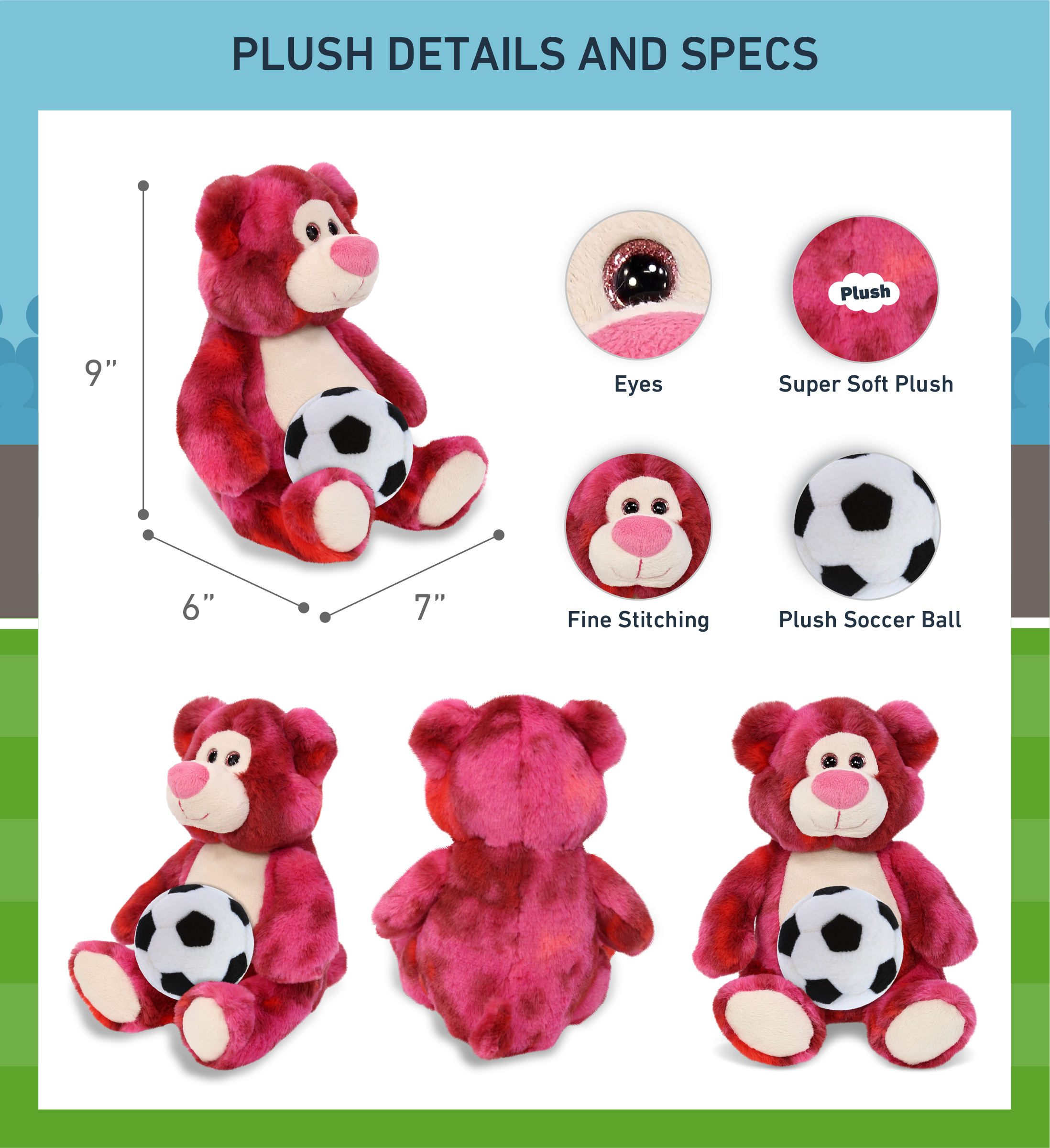 - Included with the Purchase of the Cute Bear Plush – Includes 1 DolliBu Pink Tie-Dye Bear with a soccer ball plush, decorated with realistic features. The bear’s body with a sports gift ball plush makes the plush perfect for cuddles. The bear plush toy features details like its characteristic ears. The pink tie-dye bear’s eyes make the critter so charming. The cute pink tie-dye bear plush toy buddy measures 6LX6WX9H inches.