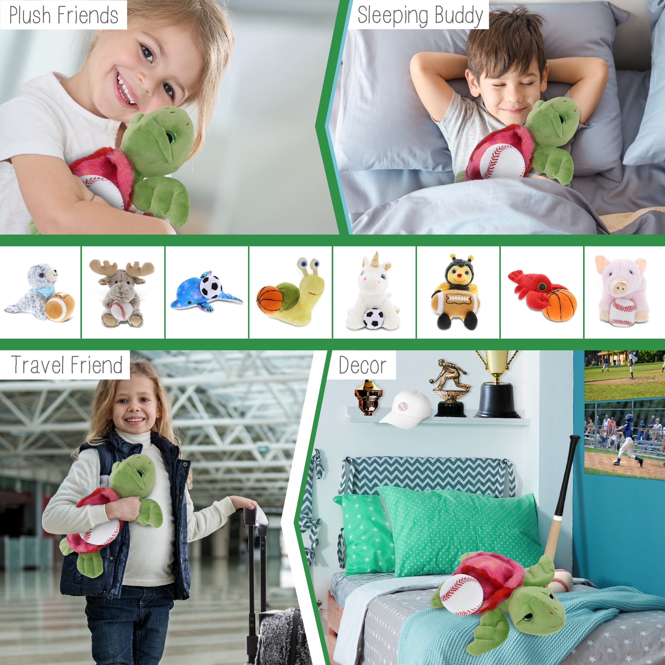 - Ideal Use for the Kids Baseball Plush and Green Stuffed Sea Turtle – The turtle baseball stuffed animal makes a great addition to your kids baseball stuff for boys collection. Great gifts for boys who love sports and plush dolls. If you’re looking for the perfect baseball gift ideas for kids, this stuffed turtle with baseball plush is the perfect choice. It’s the perfect stuffed animal baseball birthday gifts to give on any special occasion.