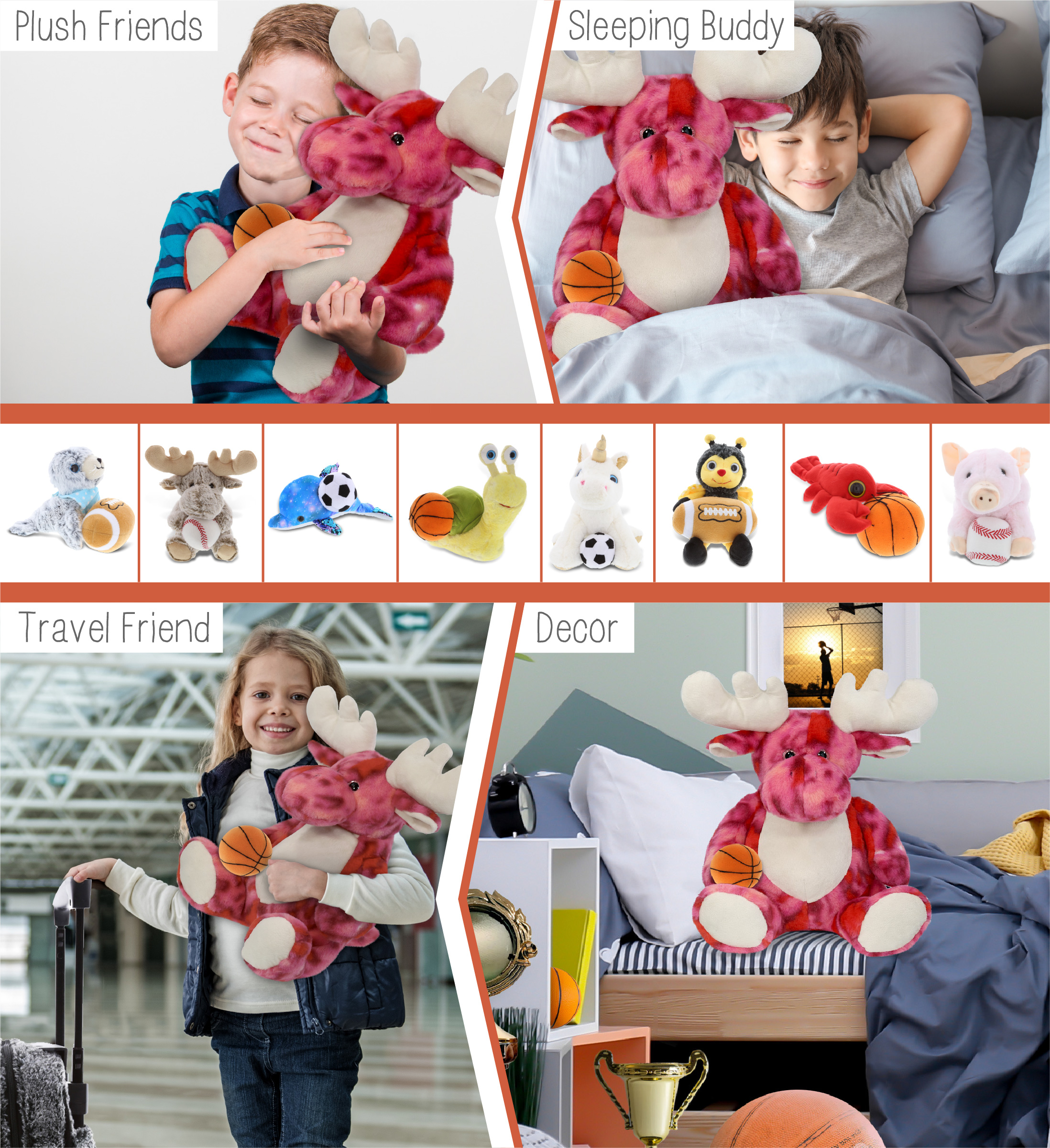 - High-Quality Super Soft Plush Pink Tie-Dye Moose Stuffed Animal – The machine-sewn moose toy plush and basketball are made of premium-quality polyester stuffed with soft fluffy polyester fillings. Made with durable and child-friendly features. Cute and snuggly moose. Cute soft toys designed to be your little one’s best buddies. To maintain fluffy stuffed animals, wash moose plush toys with cold soapy water and allow it to air dry.