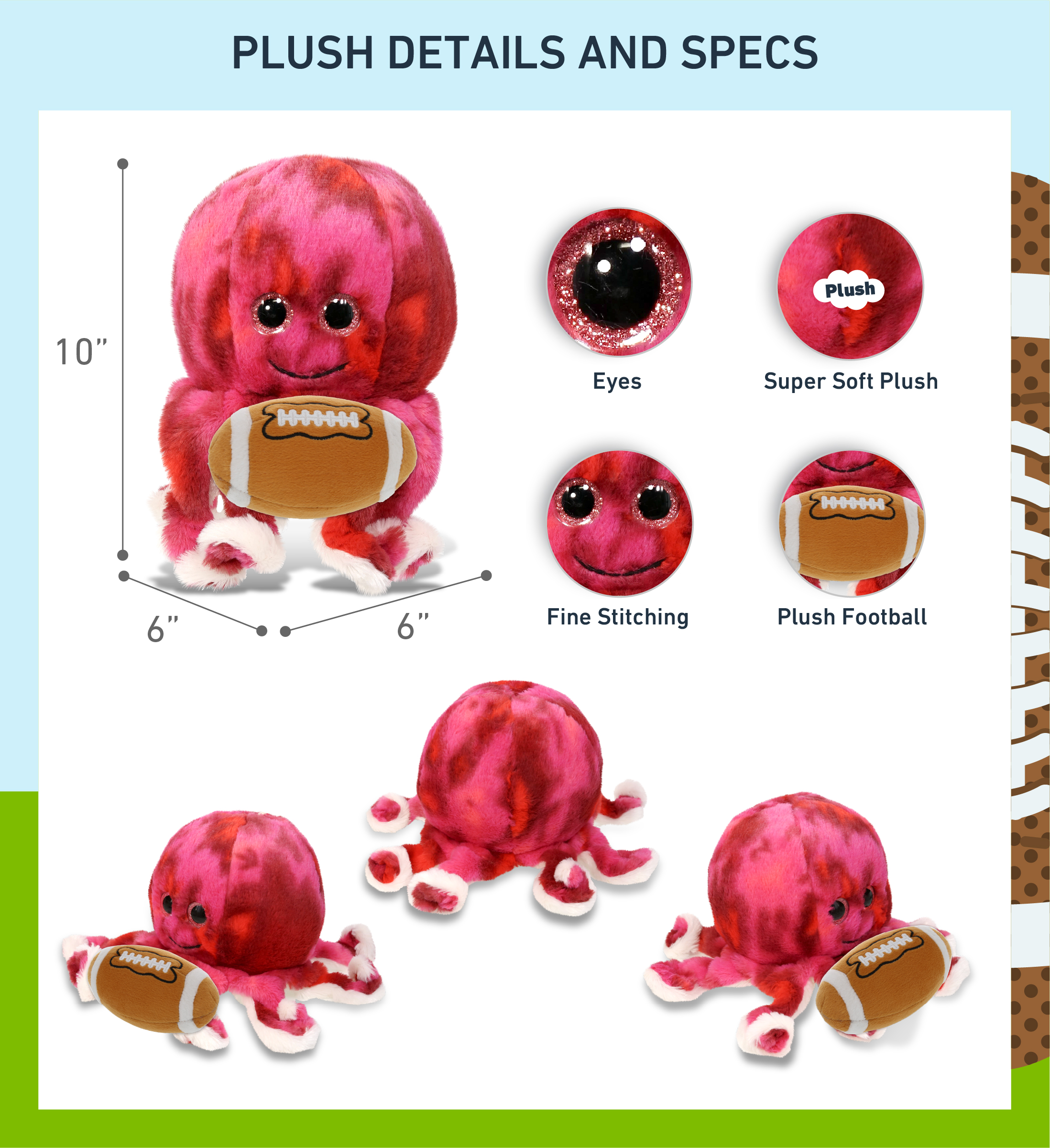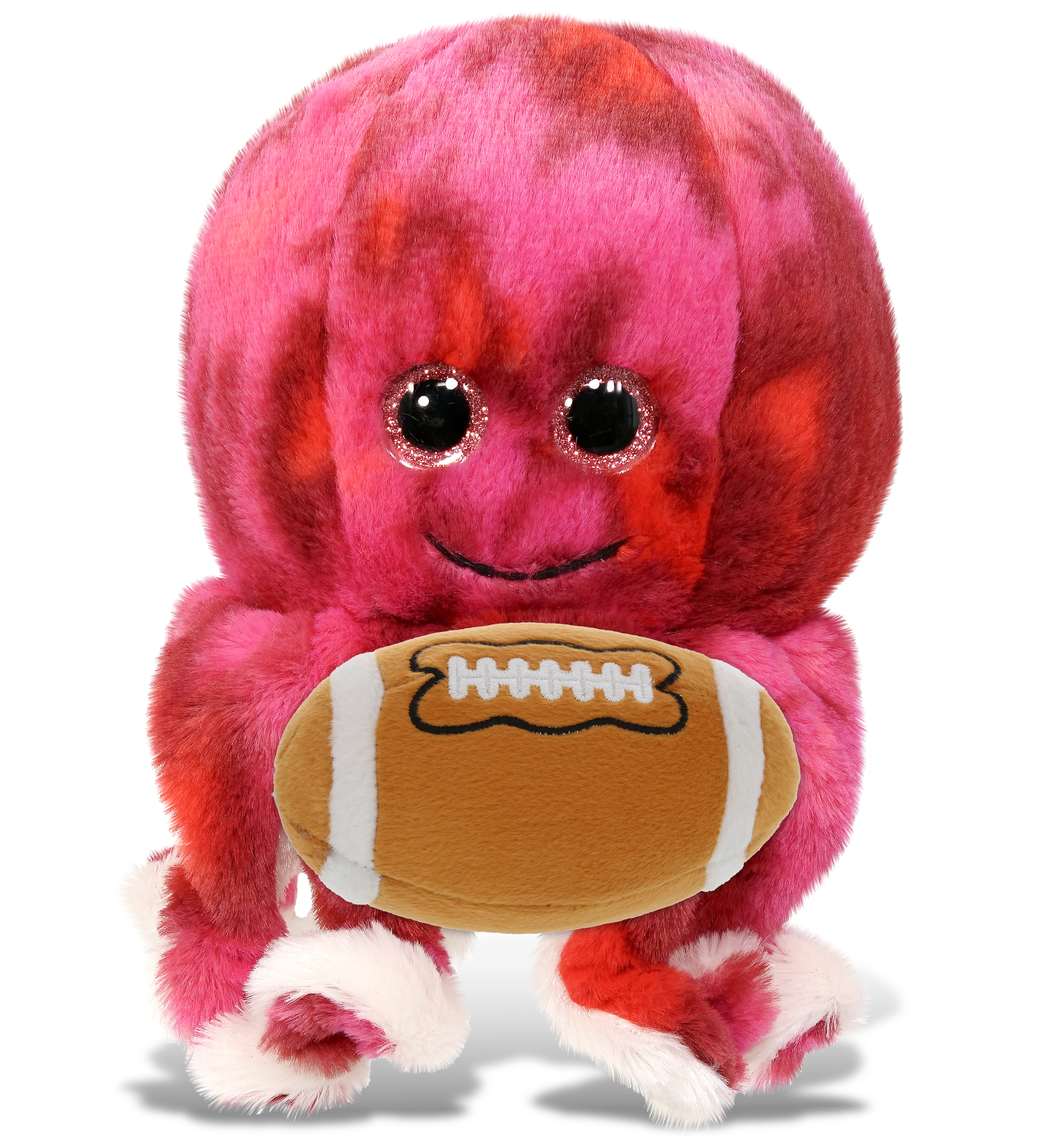 - Personalization, Customization, and Add-On Options – This Super Soft Sports Stuffed Animal Pink Tie-Dye Octopus Plush comes customized with a football plush. You can personalize it with the name of your loved one imprinted on the item. You also have the option to add some or all of the cool add-ons to make your gift extra special: 1) Gift Bag; 2) Tissue Paper; 3) Greeting Card.