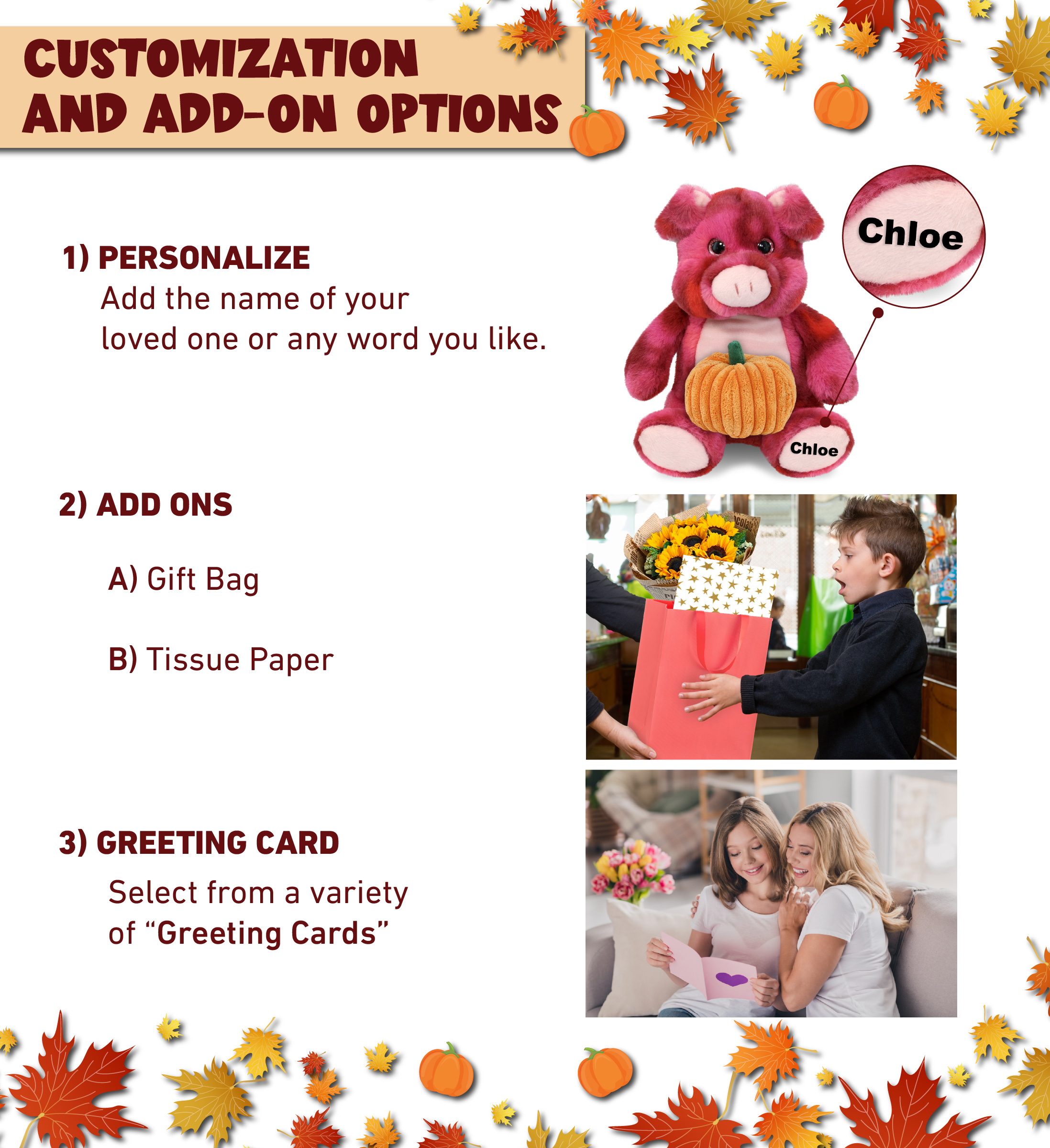 - Personalization, Customization, and Add-On Options – Super Soft Pink Tie-Dye Pig Halloween stuffed animal comes customized with a small pumpkin plush toy. You can personalize your pig with the name of a loved one, or add any word which we will imprint on the item. You also have the option to add some or all of the cool add-ons to make your gift extra special: 1) Gift Bag 2) Tissue Paper 3) Greeting Card.