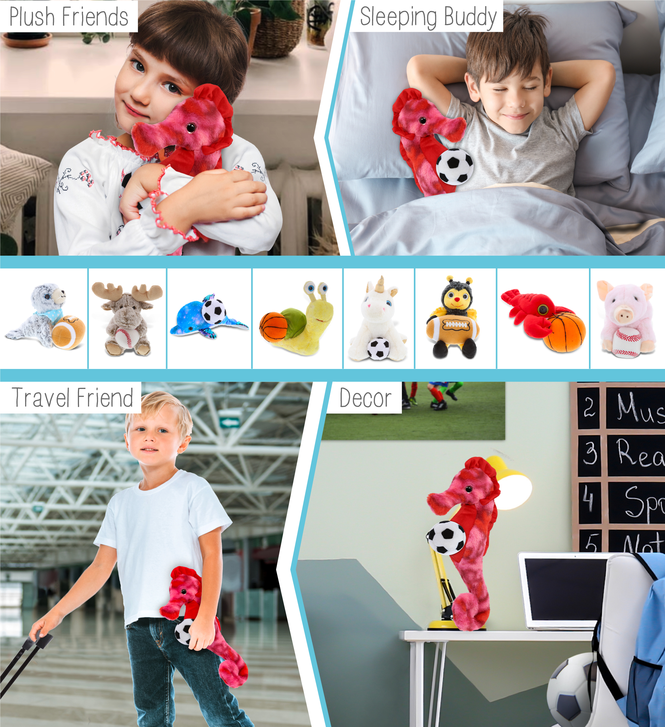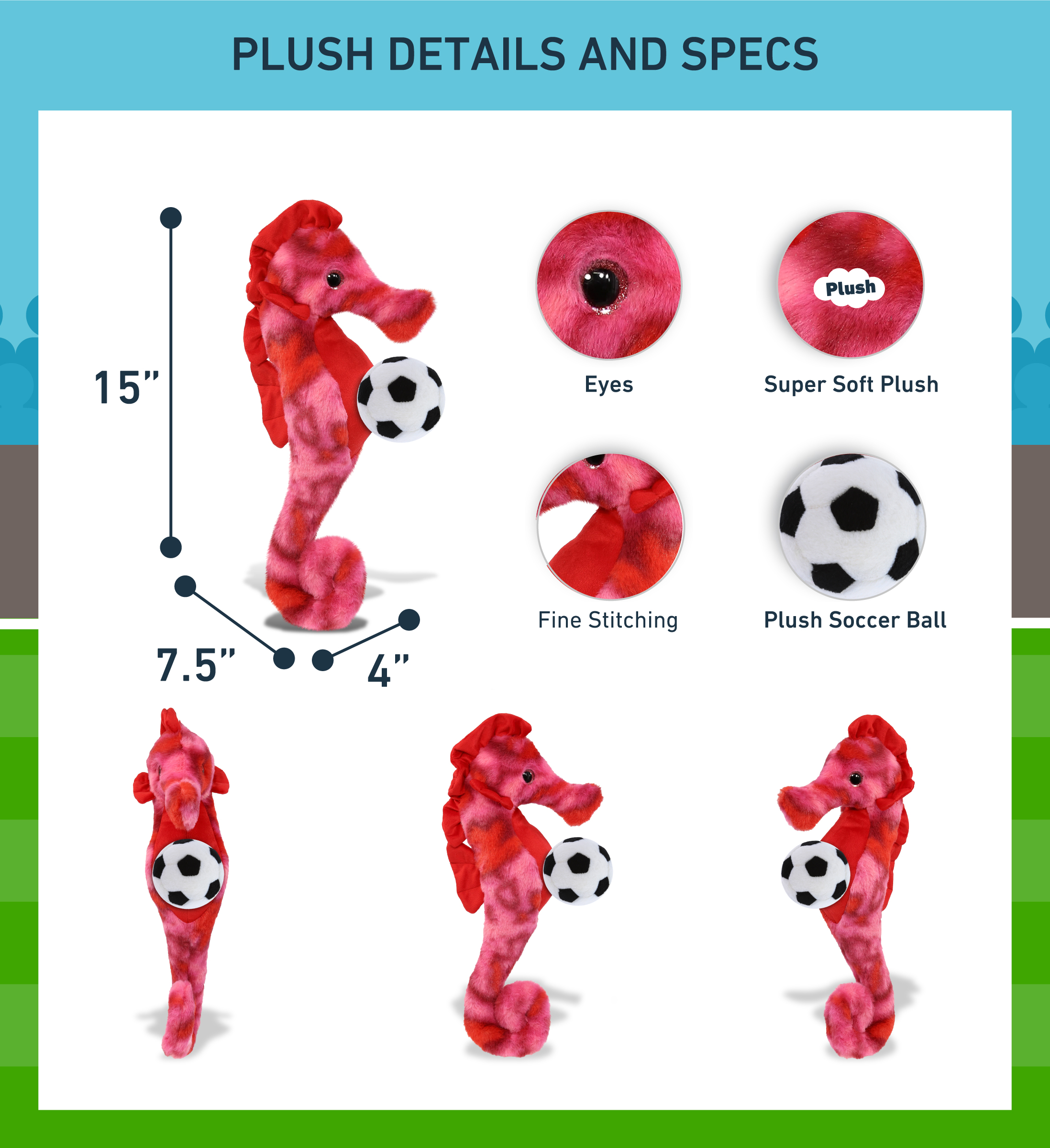 - Included with the Purchase of the Cute Seahorse Plush – Includes 1 DolliBu Pink Tie-Dye Seahorse stuffed animal with a soccer ball plush, decorated with cool features of a cute seahorse. The seahorse’s body with a sports gift ball plush makes the plush perfect for cuddles. The plush toy displays the realistic details of a seahorse. The seahorse’s eyes make the critter so charming. The cute seahorse plush toy buddy measures 7.5LX4WX15H inches.