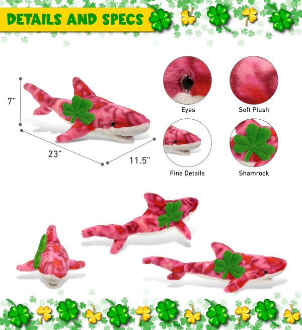 - THE SHAMROCK PLUSH SHARK IS FOR EVERYONE WHO LOVES STUFFED ANIMALS – The plush stuffed animal shark toy with an Irish shamrock is for everyone looking for cute stuffed animals to celebrate St Patricks Day. Perfect for Saint Patricks Day decor or cool prizes on St Patricks Day Games. Let the good times roll with the Pink Tie-Dye Shark with a green plush shamrock; cute green St Patricks Day Gift to give this festive season.