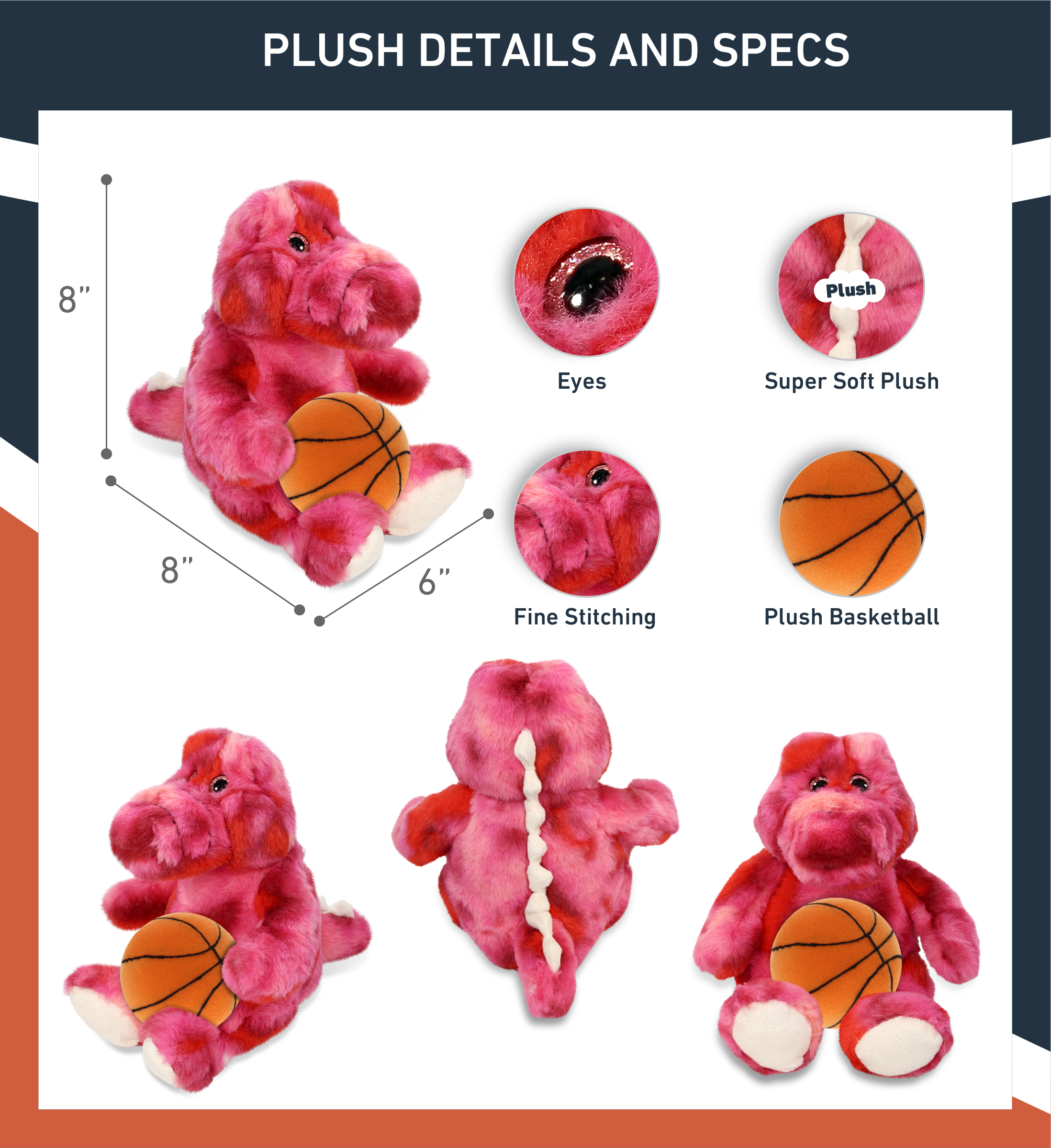 - Personalization, Customization, and Add-On Options – The Super Soft Sports Stuffed Animal Pink Tie-Dye Sitting Alligator comes customized with a Basketball Plush. You can personalize your sitting alligator plush toy with the name of your loved one, which we will imprint on the item. You also have the option to add some or all of the cool add-ons to make your plush gift extra special: 1) Gift Bag; 2) Tissue Paper; 3) Greeting Card.