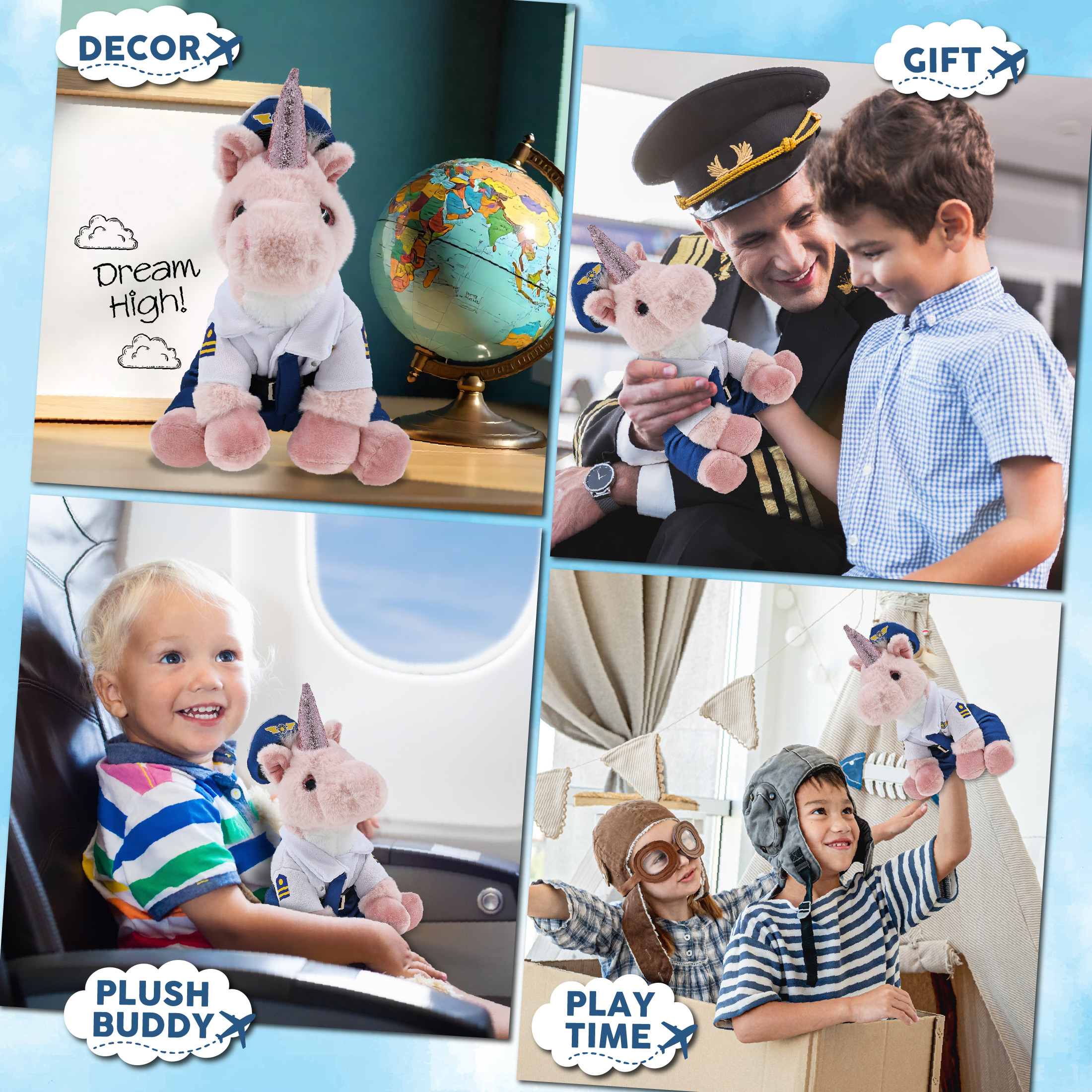 - The Pilot Stuffed Pink Unicorn Plush is Perfect for Aviation Lovers – Everyone who loves aviation will be thrilled to have a pilot stuffed bear, whether it’s a cute stuffed animal gift or a cute pink unicorn plush for aviation-themed collections. Perfect pilot fluffy stuffed animal for flight pretend play and as a pilot pink unicorn toy gifts for kids who aspire to be pilots when they grow up. Recommended for ages 3 and up.