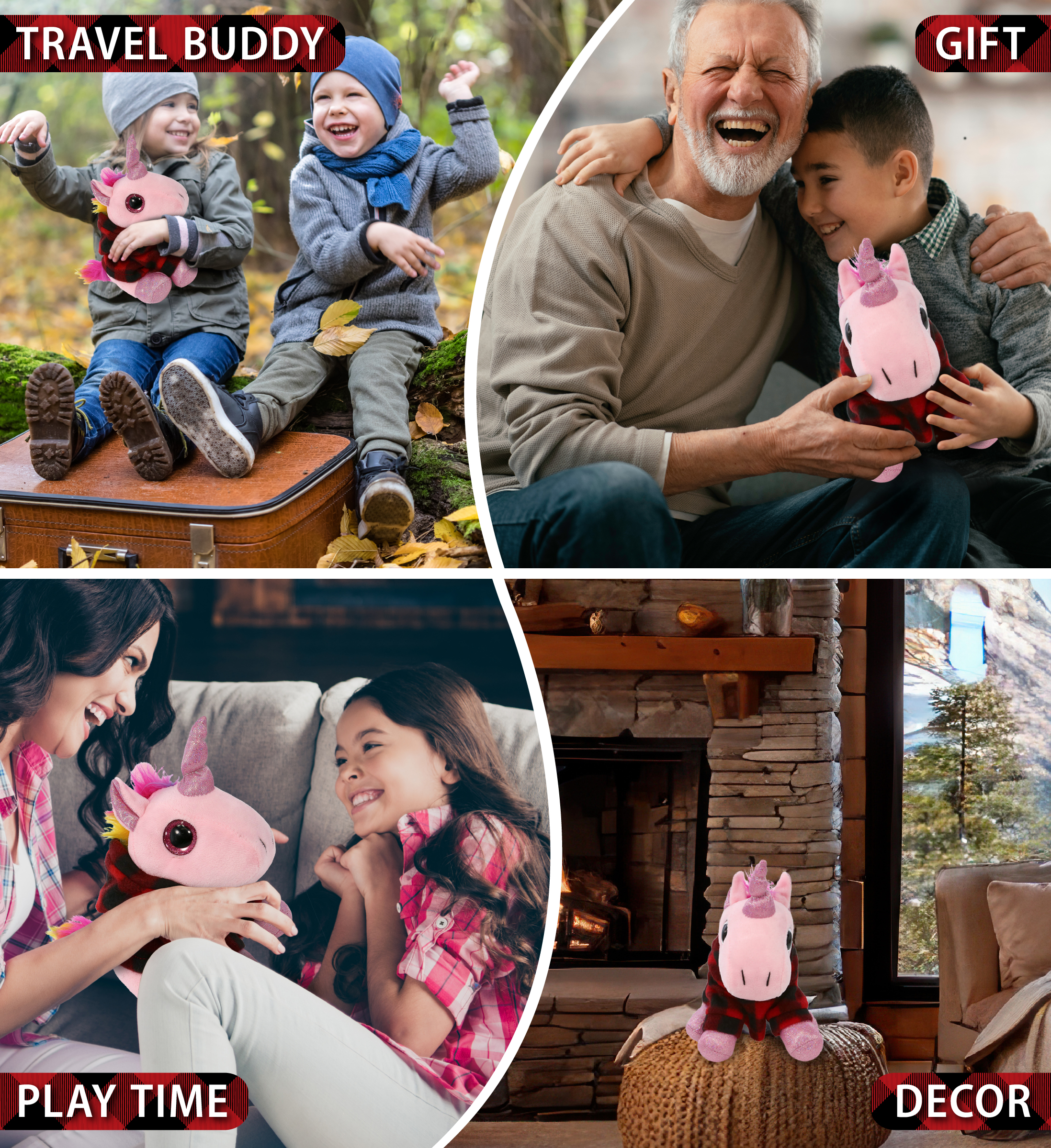 - HIGH-QUALITY LUMBERJACK STUFFED ANIMAL – The unicorn stuffed toy is made from high-quality 100% polyester to ensure long-lasting comfort and durability, making it a perfect holiday buddy. It’s black and red flannel shirt, paired with a soft plaid hoodie, gives this plush a festive, wintery look that’s perfect for holiday decor or as a thoughtful stuffed animals Christmas gift for loved ones. A heartwarming addition to your holiday traditions!