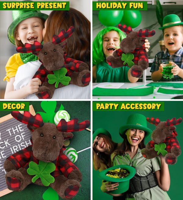 - THE SHAMROCK PLUSH MOOSE IS FOR EVERYONE WHO LOVES STUFFED ANIMALS – The Plaid Brown Moose with Red Plaid Hoodie toy with an Irish shamrock is for everyone looking for cute stuffed animals to celebrate St Patricks Day. Perfect for Saint Patricks Day decor or cool prizes on St Patricks Day Games. Let the good and fun times roll with this moose with a green plush shamrock; cute green St Patricks Day Gift to give this festive season.