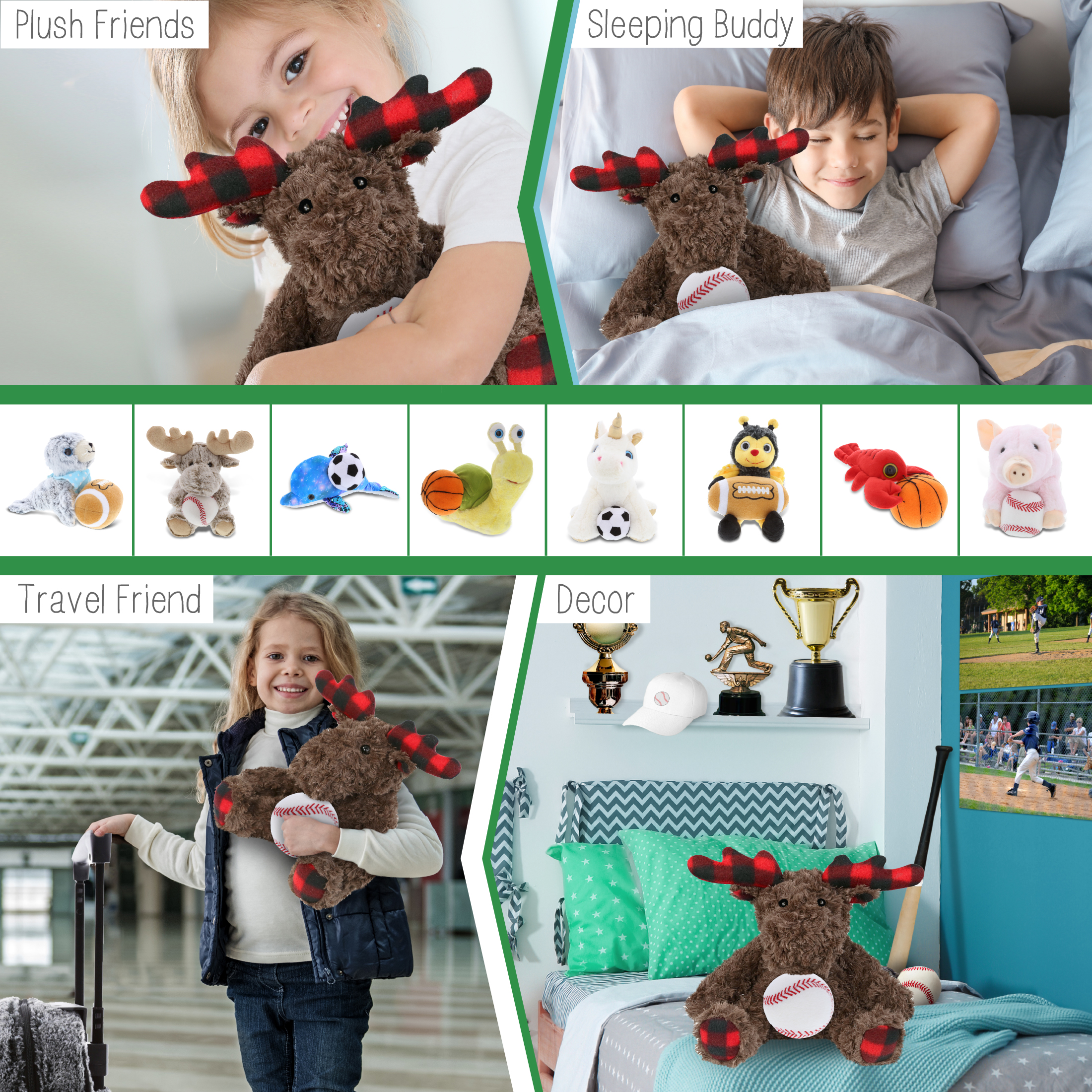 - Ideal Use for the Kids Baseball Plush Stuffed Curly Moose – The moose baseball stuffed animal makes a great addition to your kids baseball stuff for boys collection. Great gifts for boys who love sports and plush dolls. If you’re looking for the perfect baseball gift ideas for kids, this stuffed moose with baseball plush is the perfect choice. It’s the perfect stuffed animal baseball birthday gifts to give on any special occasion.
