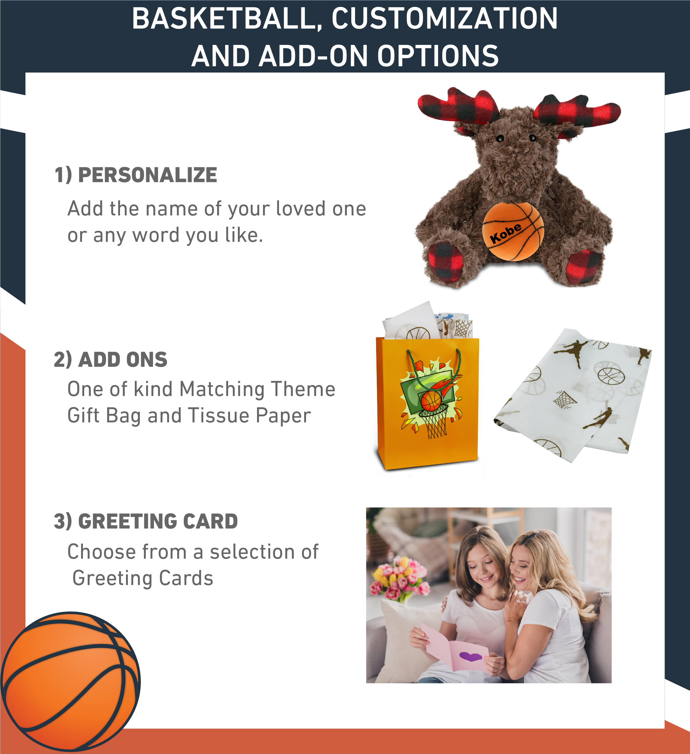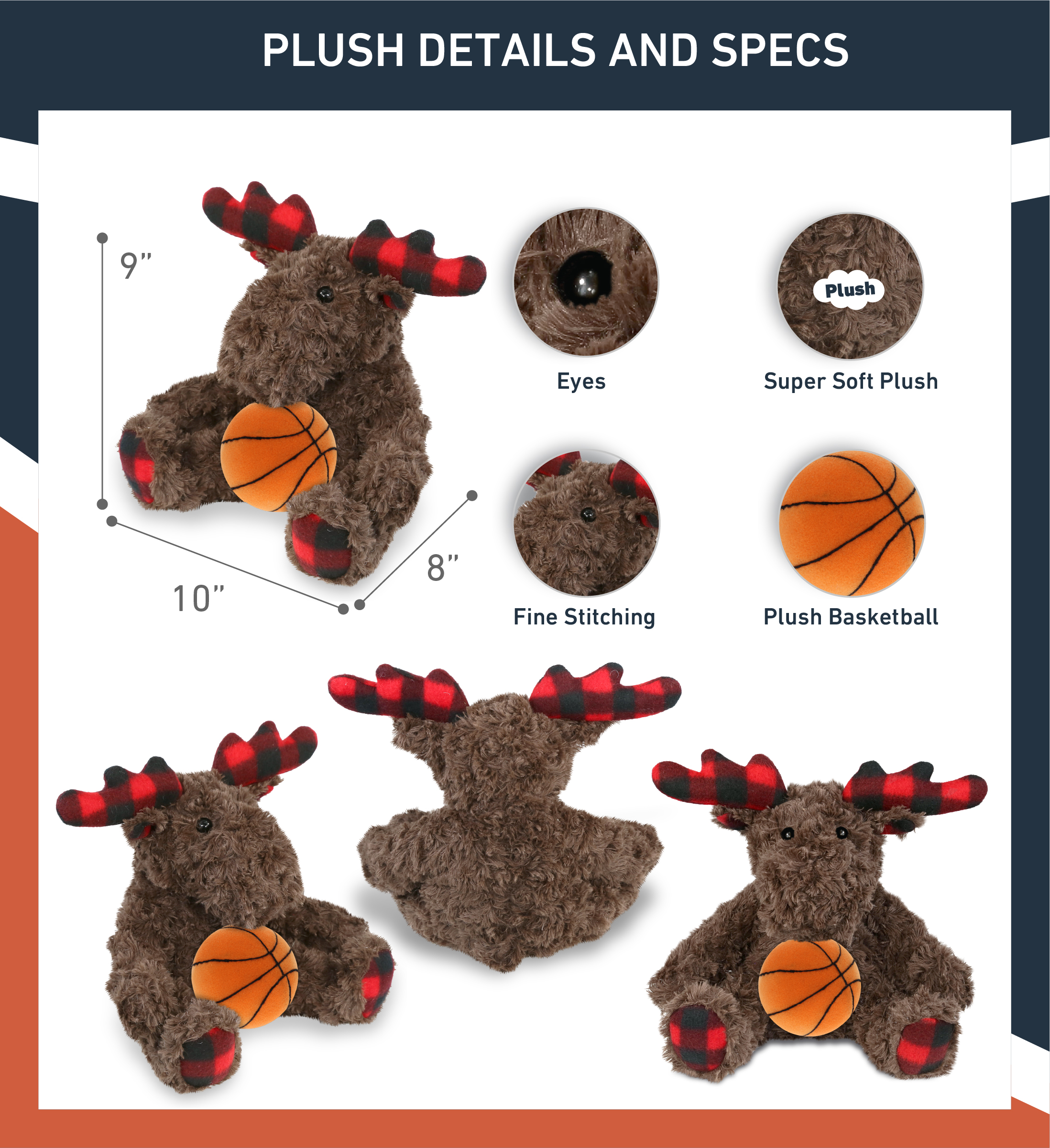 - Personalization, Customization, and Add-On Options – The Super Soft Sports Stuffed Animal Plaid Curly Moose comes customized with a Basketball Plush. You can personalize your moose plush toy with the name of your loved one, which we will imprint on the item. You also have the option to add some or all of the cool add-ons to make your plush gift extra special: 1) Gift Bag; 2) Tissue Paper; 3) Greeting Card.