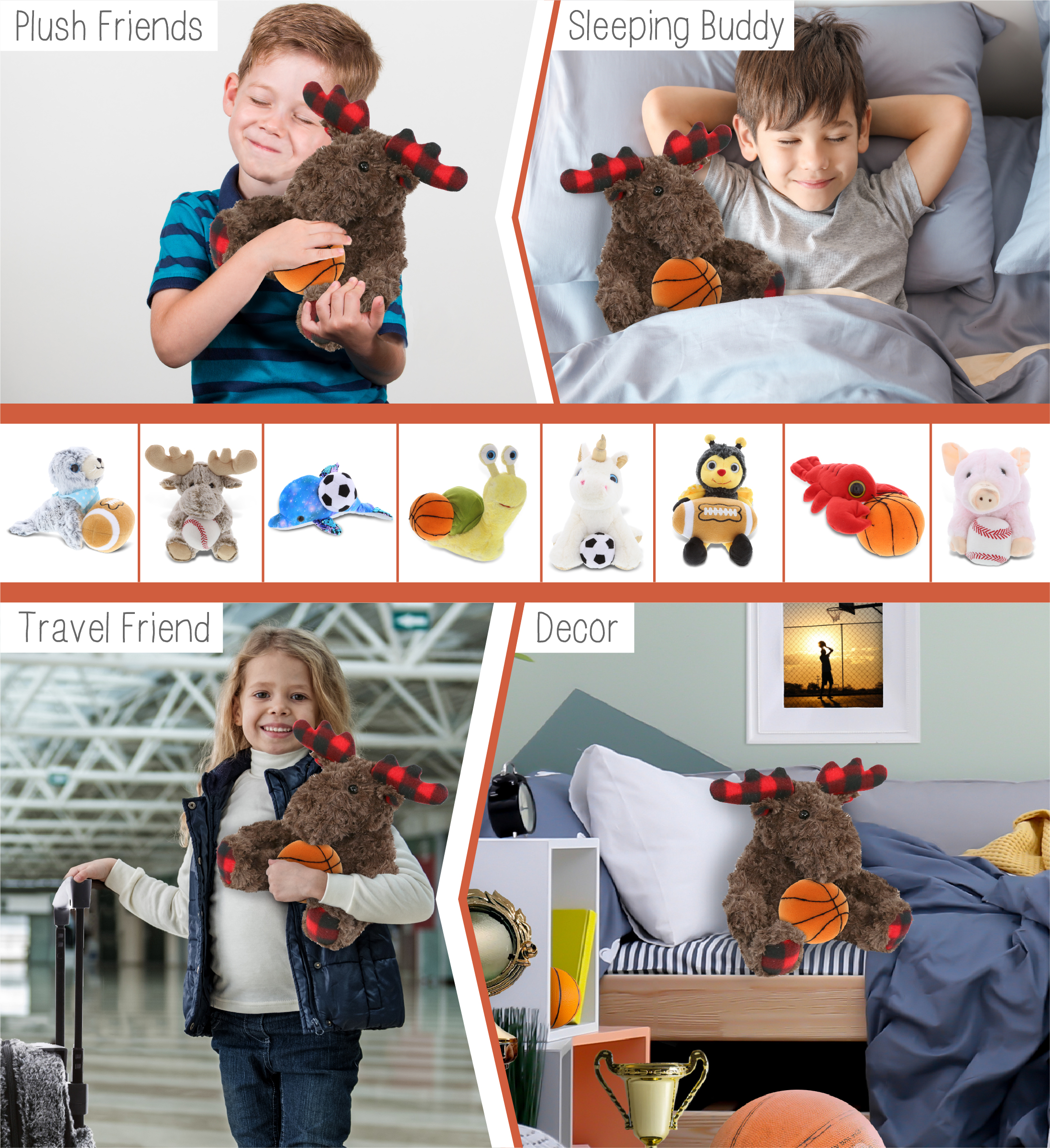 - Included with the Purchase of Cute Moose Plush – Includes 1 DolliBu Plaid Curly Moose Super Soft Plush with a basketball plush, decorated with realistic features of a cute plush animal. The moose body with a sports gift ball plush makes the plush perfect for cuddles. The moose plush toy features details like its characteristic antlers. The moose eyes make the critter so charming. The plush toy buddy measures 10Lx8Wx9H inches.