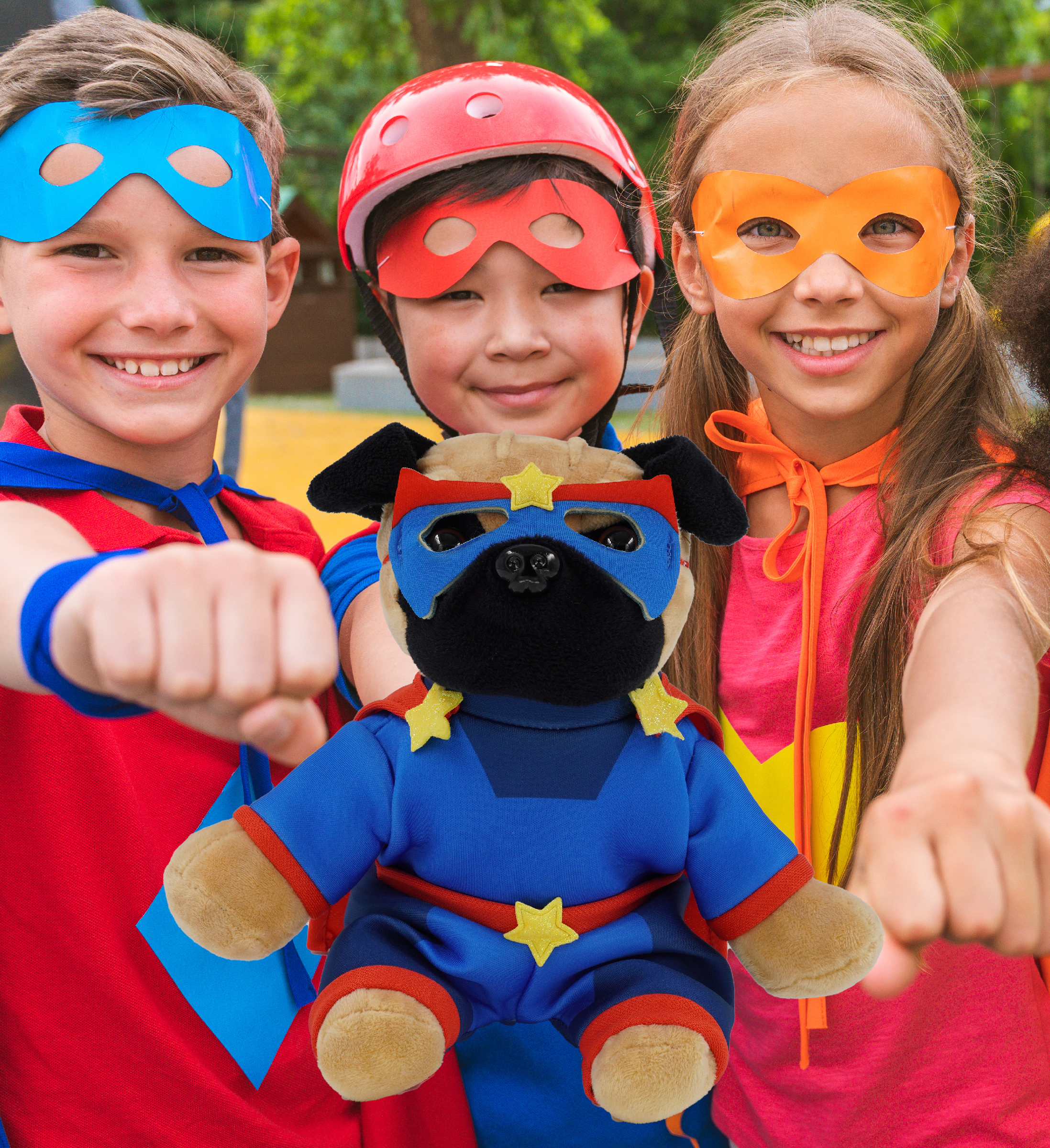 - Features a Cute Teddy Bear Plush with Superhero Cape Outfit – With a mask, suit, and cape, this pug dog stuffed plush toy comes with a playful and stylish look that results in two fun themes: pets and superheroes! Great teddy bear stuffed animal for adventure plush storytelling, animal toy kid playtime, or as a classroom buddy. A unique addition to any stuffed superhero lineup or plush animal kid collection with dressed stuffed animals.