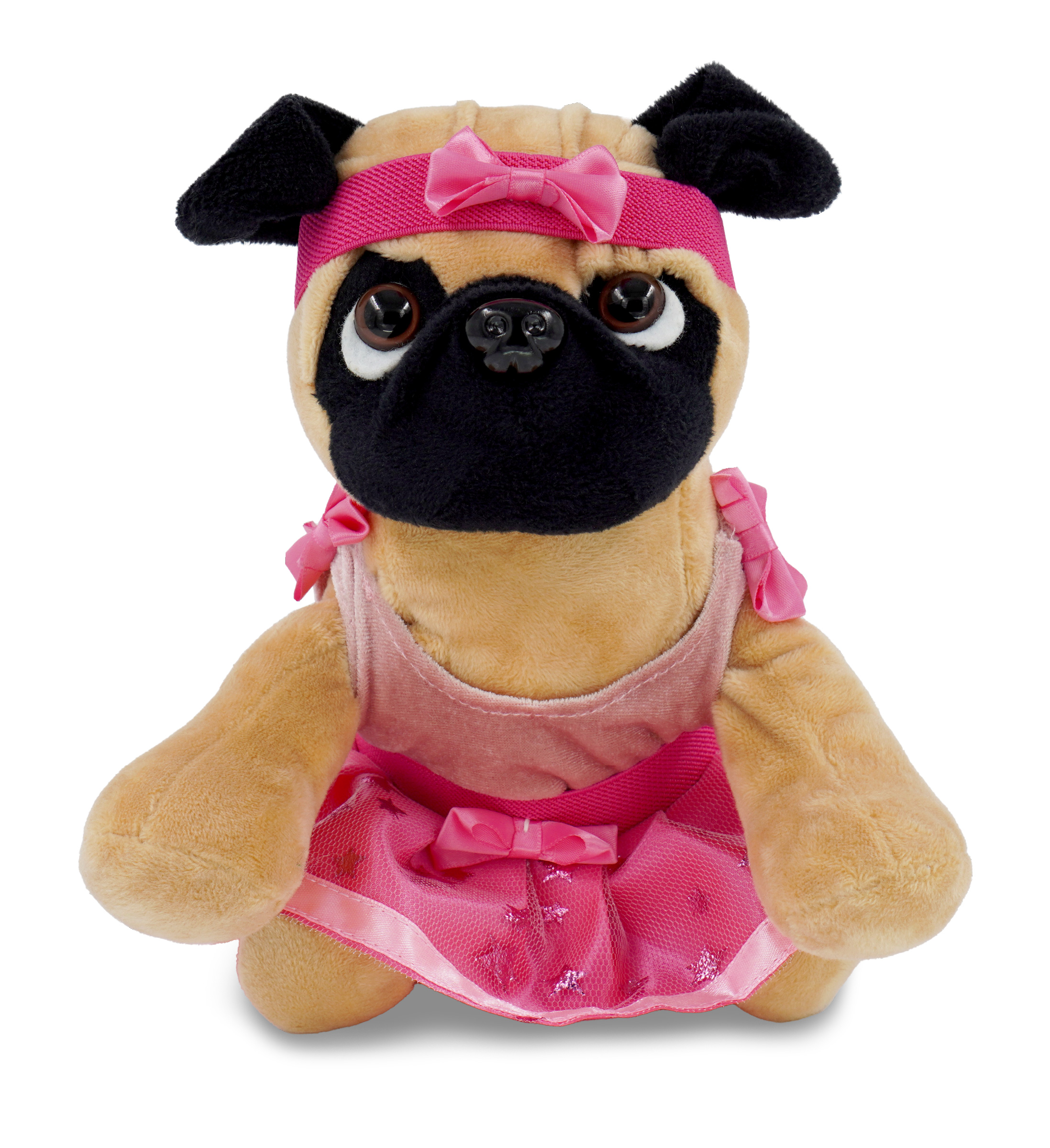 • Includes 1 DolliBu Pug Dog Plush with Ballerina Costume – It comes with a stuffed pug dog dressed in a cute ballerina doll plush outfit, complete with a pink headband with a bow, tutu skirt, and a sleeveless top. This pug dog figure ballerina toy is designed to be display-worthy and a cuddle plush for girls. This cute plush pug dog ballerina doll measures approximately 9Lx5Wx8H inches and is best for kids ages 3 and up.