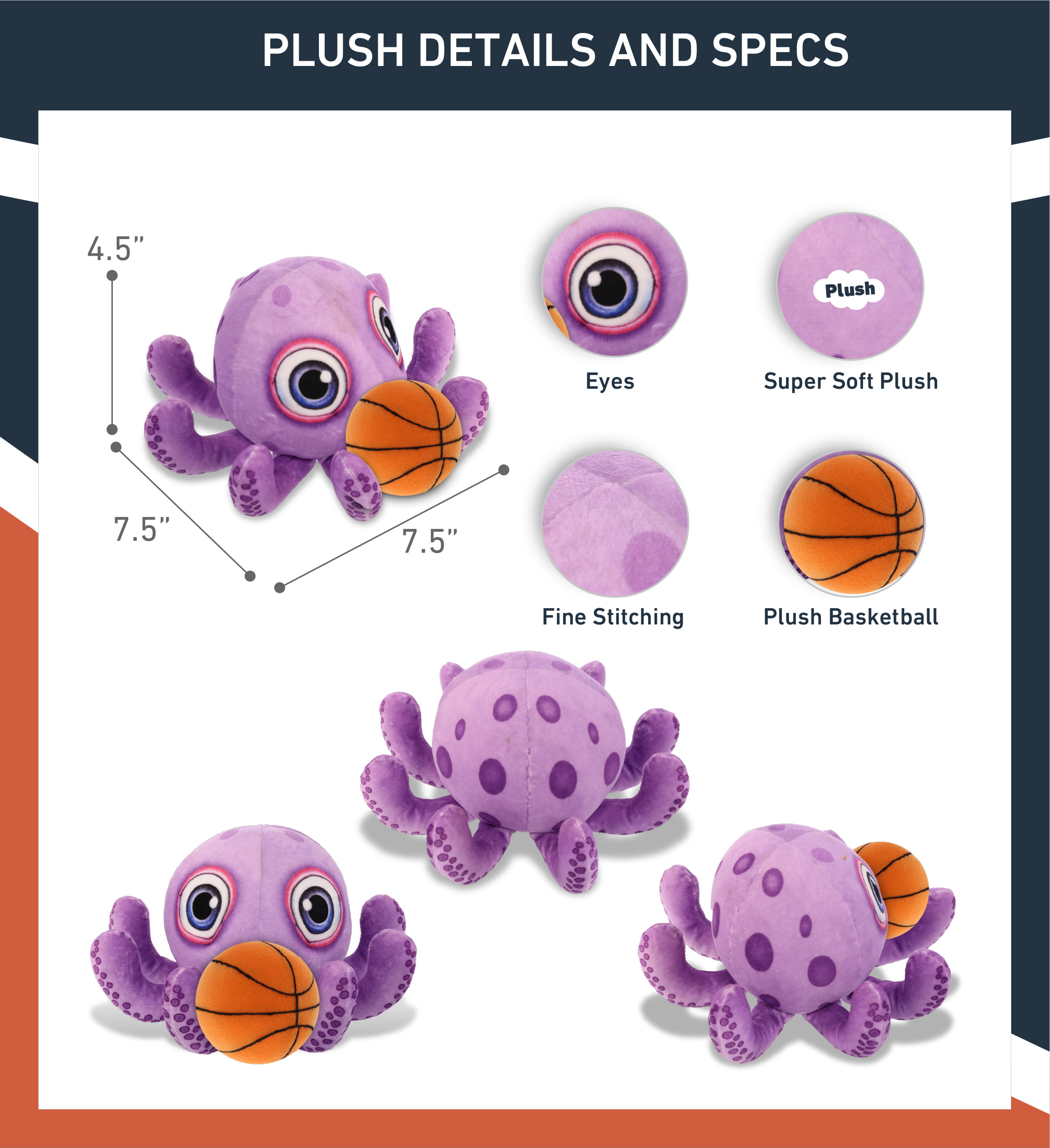 • Included with the Purchase of Adorable Cute Octopus Plush – Includes 1 DolliBu Plush Buddies Purple Octopus with a basketball plush, decorated with realistic features of a cute plush animal. The body with a sports gift ball plush makes the plush perfect for cuddles. The octopus plush toy features details like its characteristic tentacles. The octopus eyes make the critter so charming. The plush toy buddy measures 7.5Lx7.5Wx4.5H inches.