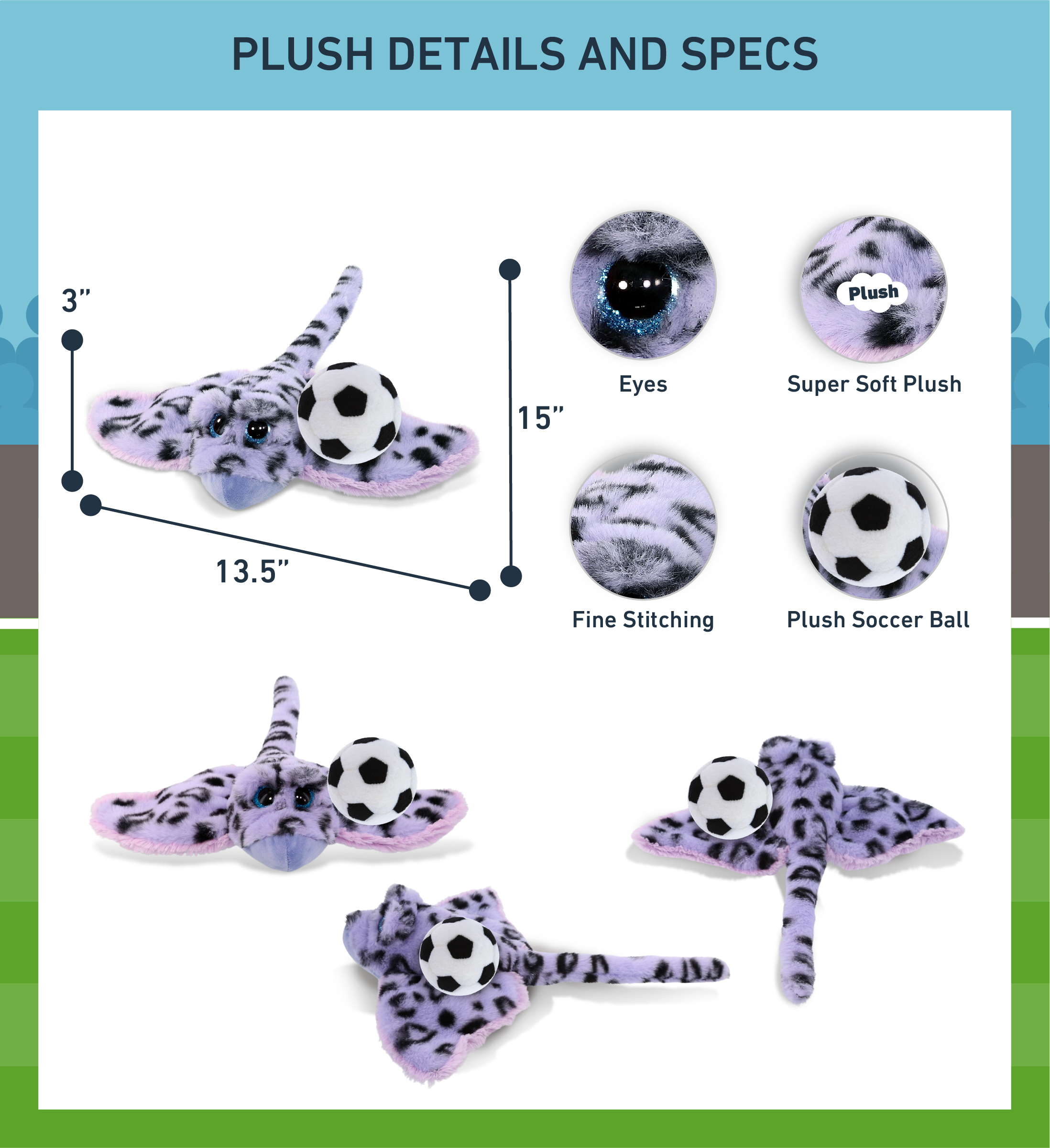 - Included with the Purchase of the Cute Stingray Plush – Includes 1 DolliBu Super Soft Purple Stingray stuffed animal with a soccer ball plush, decorated with realistic features of a cute stingray. The body with a sports gift ball plush makes the plush perfect for cuddles. The plush toy displays the realistic features of a stingray. The eyes make the critter so charming. The cute stingray plush toy buddy measures 15Lx13.5Wx3H inches.