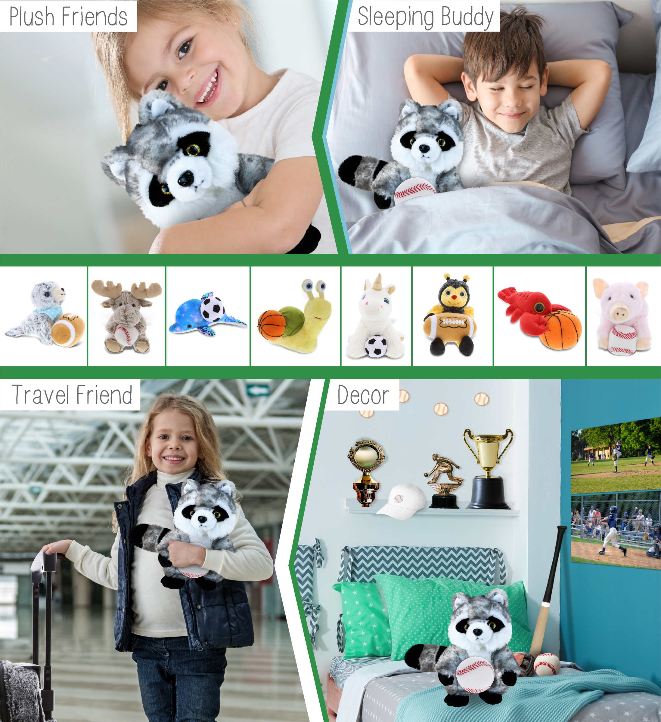 - Ideal Use for the Kids Baseball Plush and Stuffed Raccoon – The raccoon baseball stuffed animal makes a great addition to your kids baseball stuff for boys collection. Great gifts for boys who love sports and plush dolls. If you’re looking for the perfect baseball gift ideas for kids, then this stuffed raccoon with baseball plush is the perfect choice. It’s the perfect stuffed animal baseball birthday gifts to give on any special occasion.