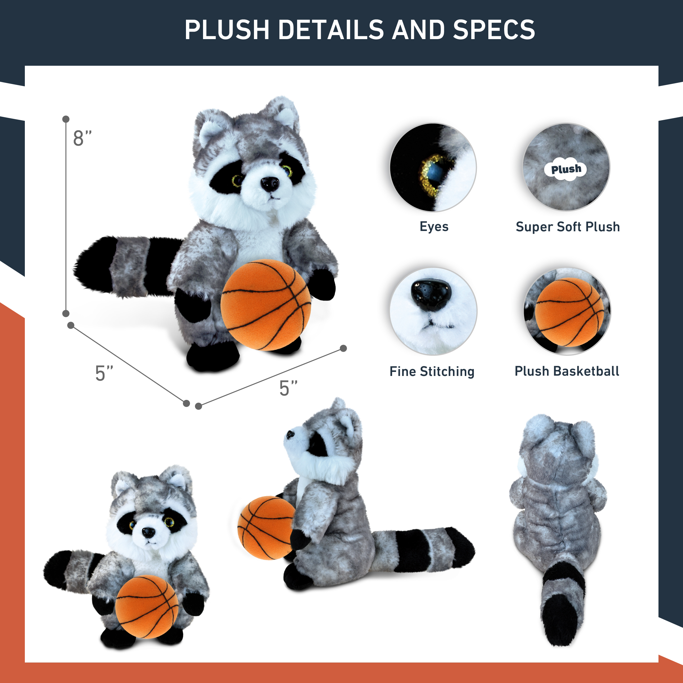 - Included with the Purchase of Adorable Cute Raccoon Plush – Includes 1 DolliBu Raccoon Super Soft Plush with a basketball plush, decorated with realistic features of a cute plush animal. The raccoon body with a sports gift ball plush makes the plush perfect for cuddles. The raccoon plush toy features details like its characteristic tail. The raccoon eyes make the critter so charming. The plush toy buddy measures 9Lx6Wx9H inches.