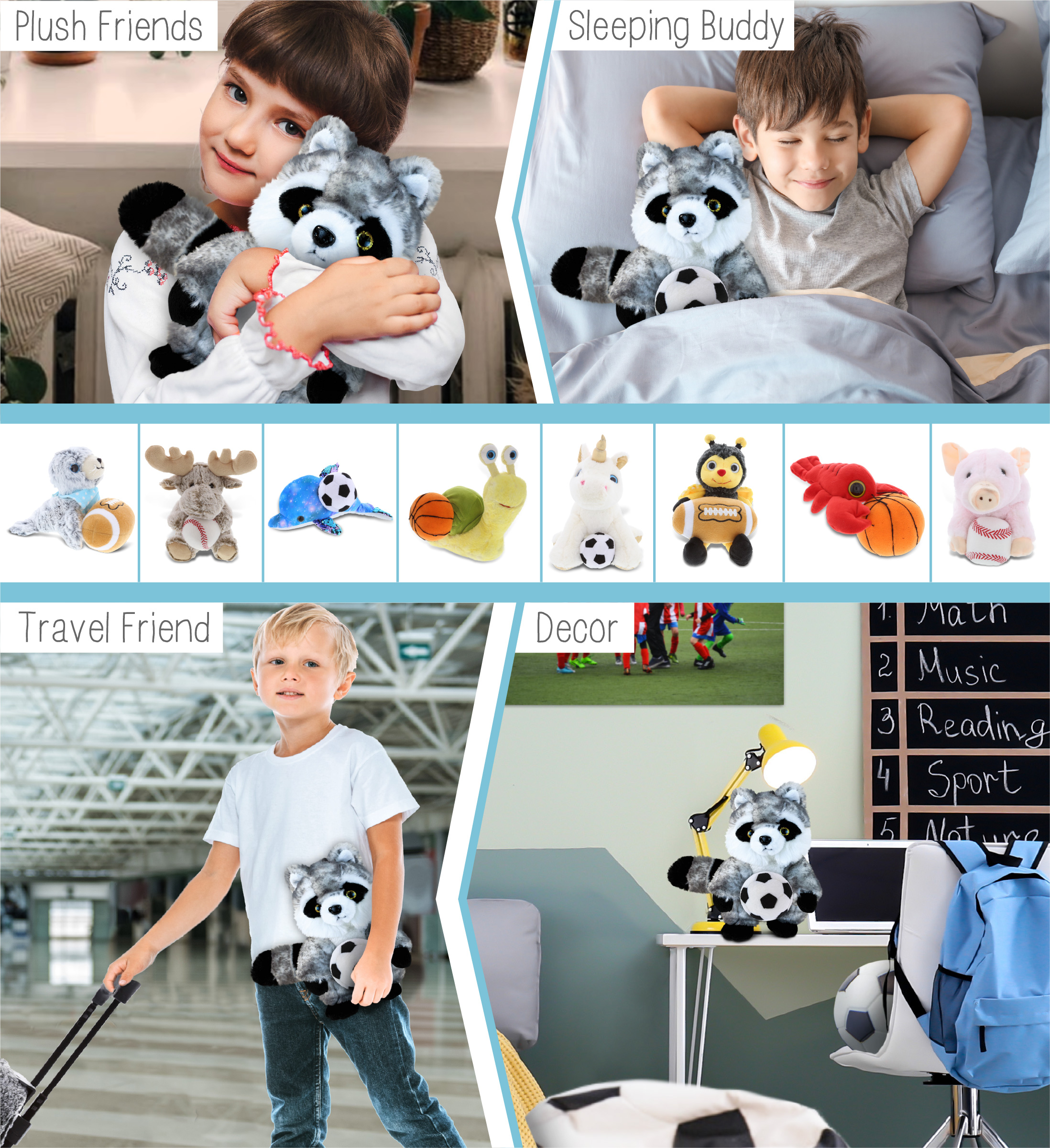 - Included with the Purchase of the Cute Super Soft Raccoon Plush – Includes 1 DolliBu Raccoon Super Soft Plush with a soccer ball plush, decorated with realistic features. The raccoon’s body with a sports gift ball plush makes the plush perfect for cuddles. The raccoon plush toy features details like its characteristic tail. The raccoon’s eyes make the critter so charming. The cute raccoon plush toy buddy measures 5Lx5Wx8H inches.