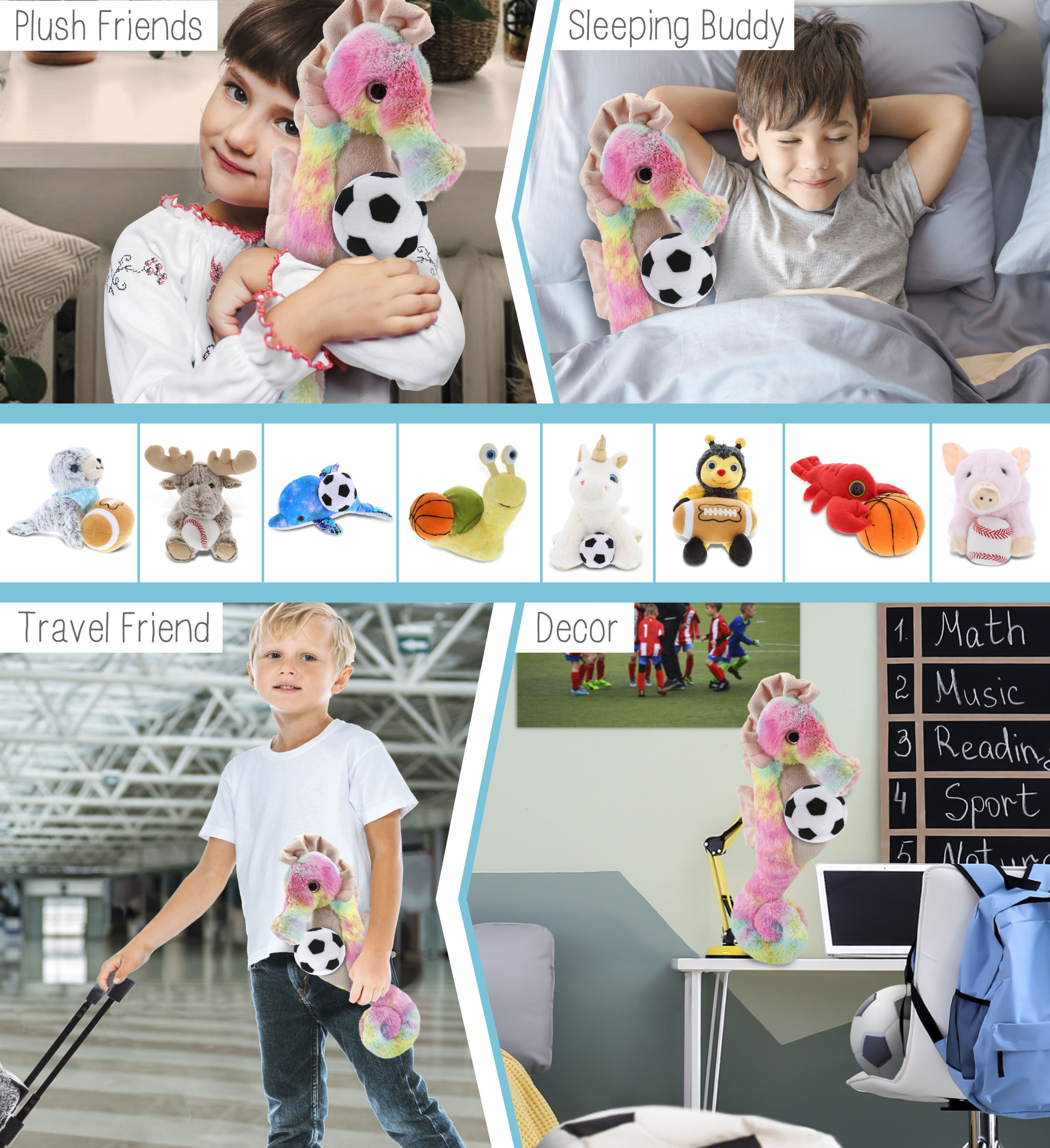 - THE STUFFED ANIMAL SEAHORSE COMES WITH A UNIQUE DESIGN YOU WILL LOVE – Have an exciting imaginary play with your little one and the seahorse toy. DolliBu’s Rainbow Seahorse will surely bring a smile to your loved ones who love ocean animals and soccer sport. A must-have toy for family bonding. Add cute stuffed animals for kids and adults like the super cute and realistic seahorse plush to your ocean-themed room and decor.