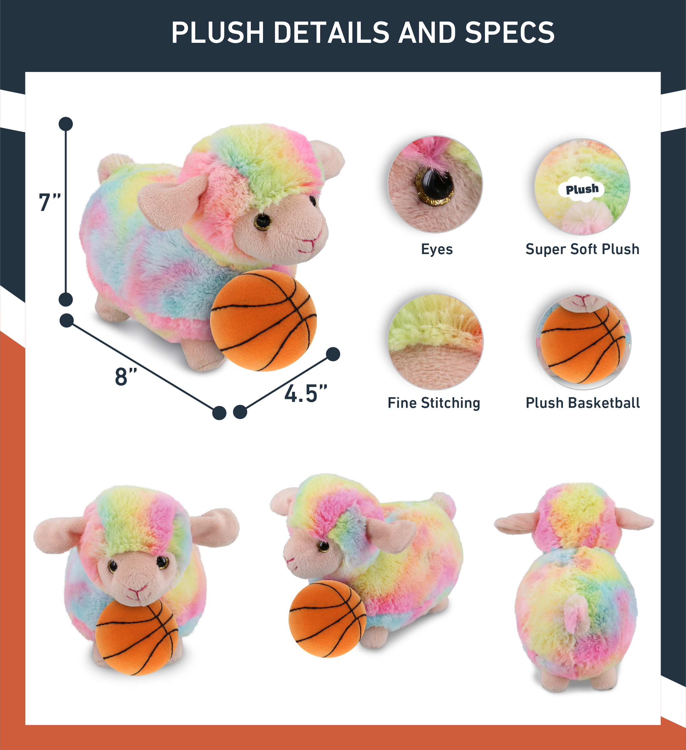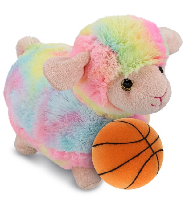 - HIGH QUALITY SUPER SOFT PLUSH SHEEP STUFFED ANIMAL – The machine-sewn Rainbow Sheep toy plush and basketball are made of premium-quality polyester stuffed with soft fluffy polyester fillings. Made with durable and child-friendly features. Cute and snuggly sheep. Cute soft toys designed to be your little one’s best buddies. To maintain fluffy stuffed animals, wash sheep plush toy with cold soapy water and allow it to air dry.