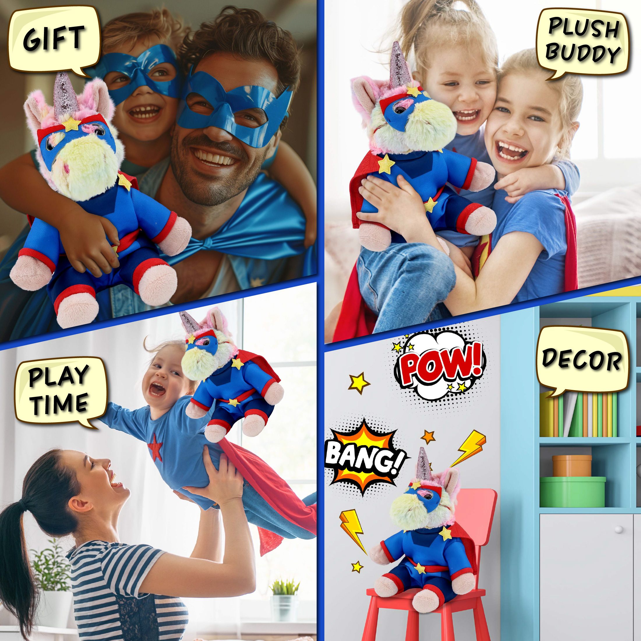 • Perfect for Everyone Who Loves Superheroes – Everyone who loves customizable stuffed animal toys will be thrilled to have a super hero stuffed rainbow unicorn. Whether it’s a cute stuffed animal gift or a superhero teddy for a super hero themed room, this plush makes a thoughtful surprise. Ideal for birthdays, Halloween, or everyday fun. Perfect to bring along on pretend-play save-the-day adventures.