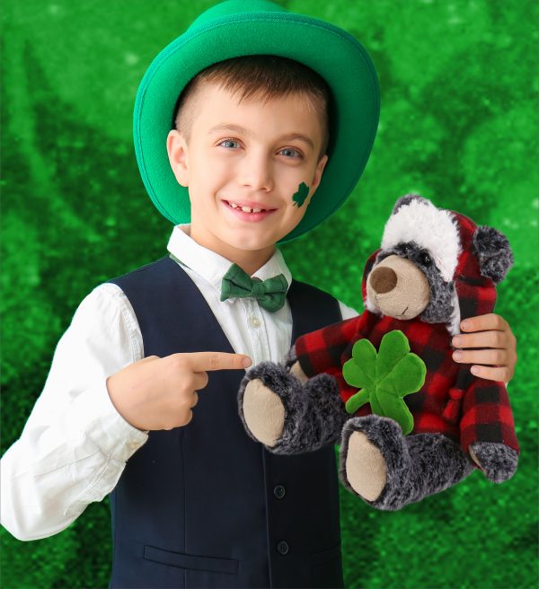 - THE SHAMROCK PLUSH BEAR IS FOR EVERYONE WHO LOVES STUFFED ANIMALS – The Super Soft Black Bear with Red Plaid Outfit toy with an Irish shamrock is for everyone looking for cute stuffed animals to celebrate St Patricks Day. Perfect for Saint Patricks Day decor or cool prizes on St Patricks Day Games. Let the good and fun times roll with this bear with a green plush shamrock; cute green St Patricks Day Gift to give this festive season.