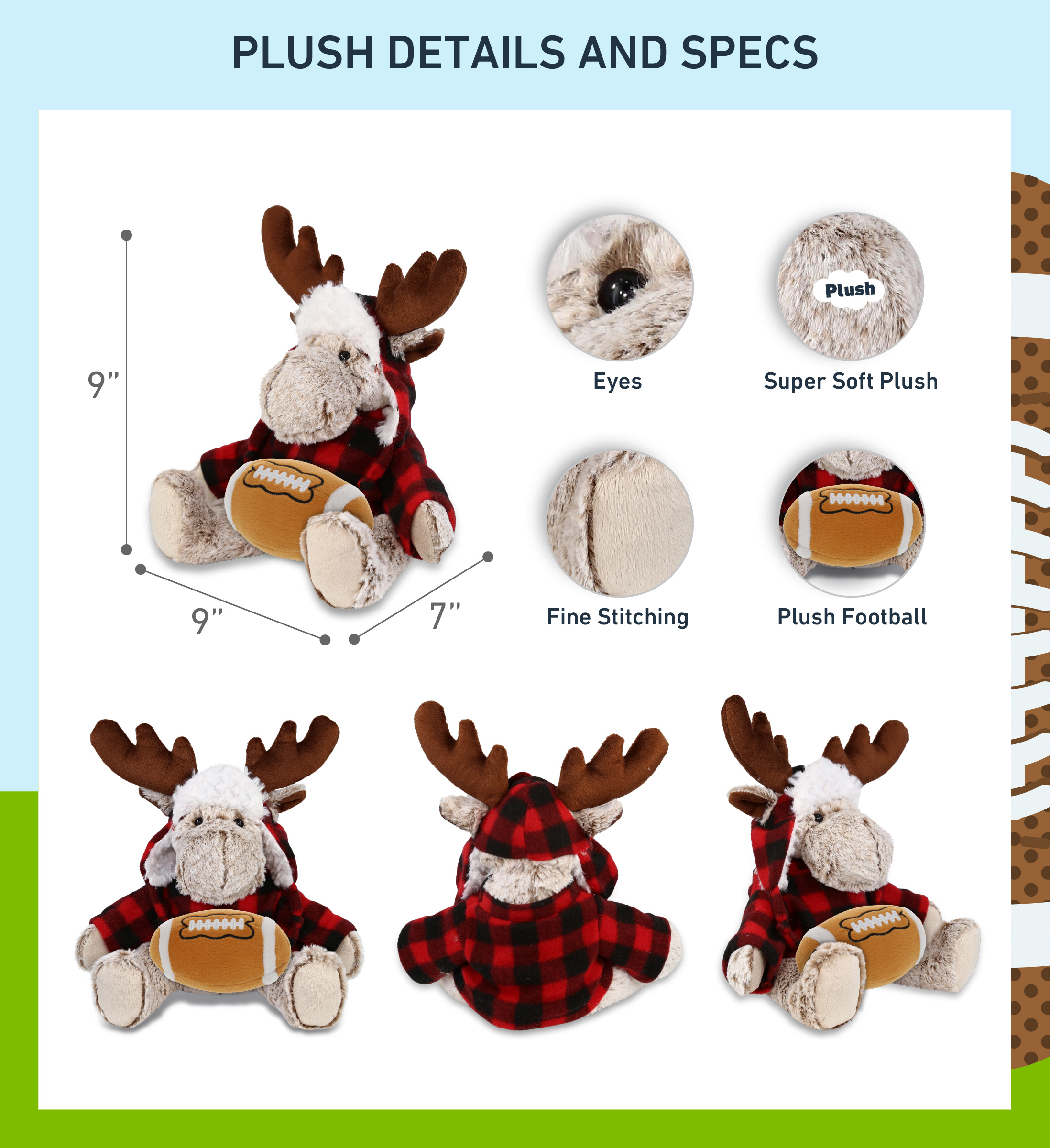 Red Plaid Outfit – Moose With Football Plush – Super Soft Plush