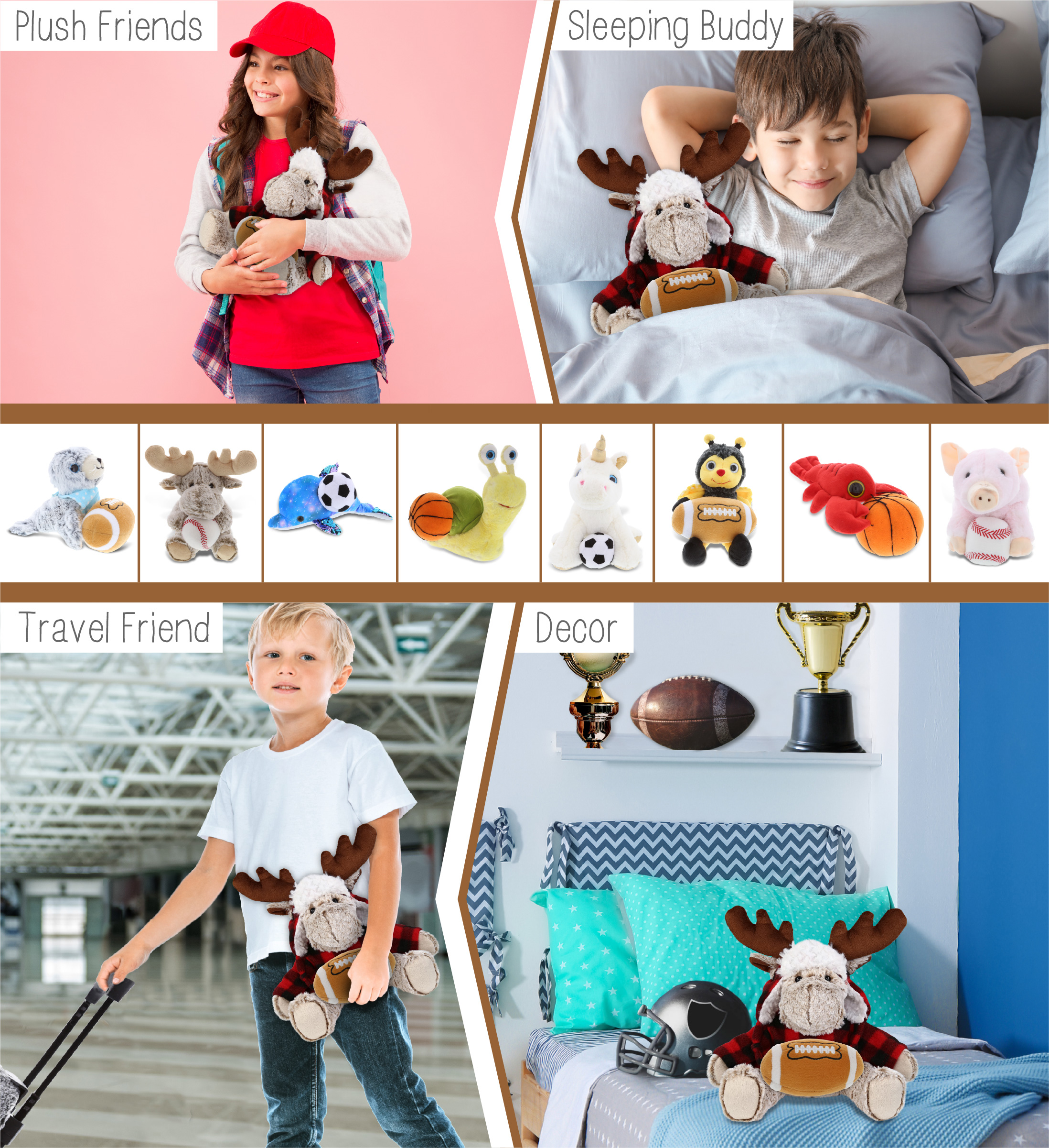 • High-Quality Super Soft Moose Stuffed Animal – The machine-sewn moose toy plush and football are made of premium-quality polyester, stuffed with soft, fluffy polyester fillings. Made with durable and child-friendly features. Cute and snuggly moose plush toy. Cute, soft toys designed to be your little one’s best buddies. To maintain fluffy stuffed animals, wash plush toys with cold soapy water and allow them to air dry.