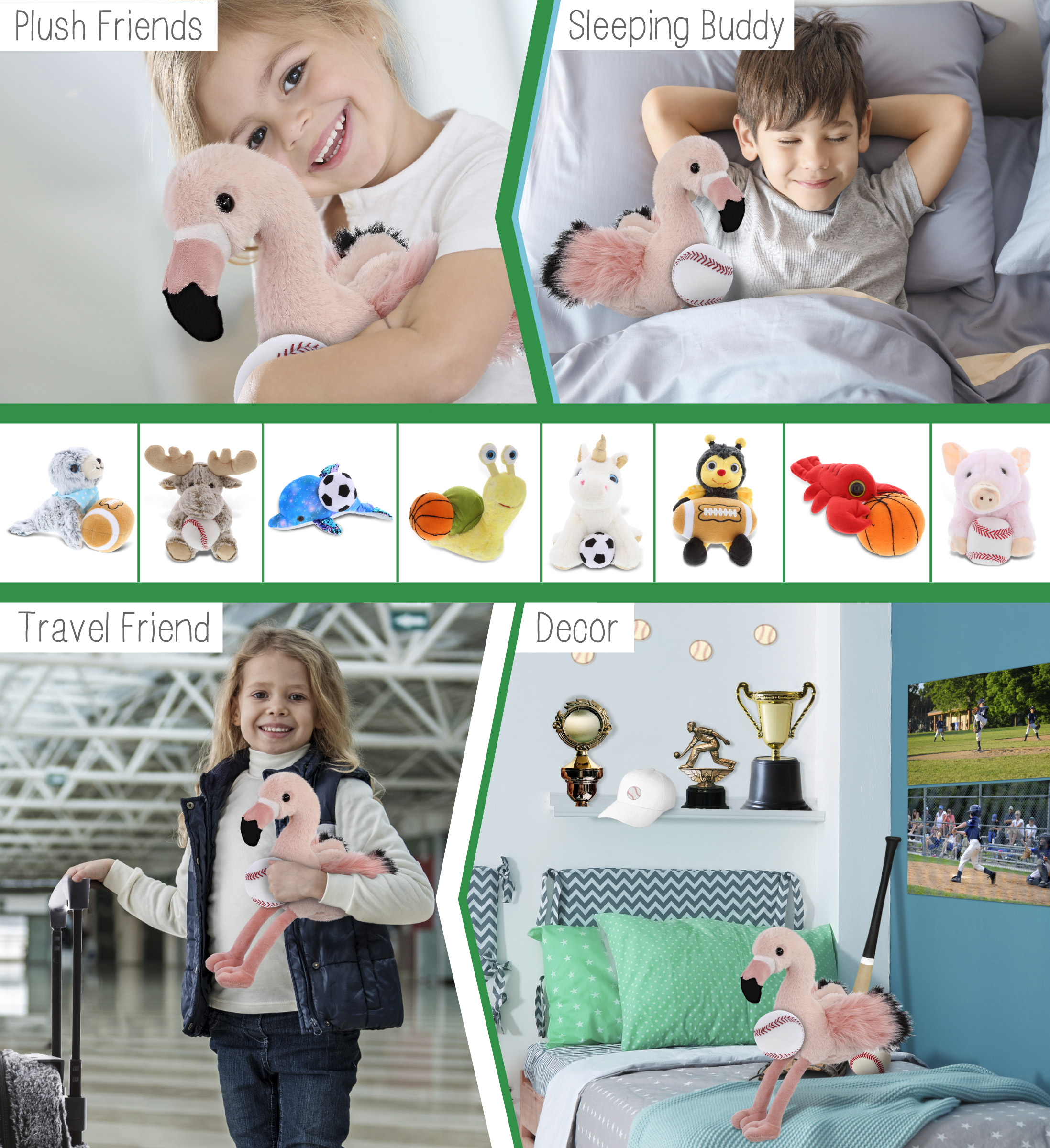 - Ideal Use for the Kids Baseball Plush and Stuffed Flamingo – The flamingo baseball stuffed animal makes a great addition to your kids baseball stuff for boys collection. Great gifts for boys who love sports and plush dolls. If you’re looking for the perfect baseball gift ideas for kids, then this stuffed flamingo with baseball plush is the perfect choice. It’s the perfect stuffed animal baseball birthday gifts to give on any special occasion.