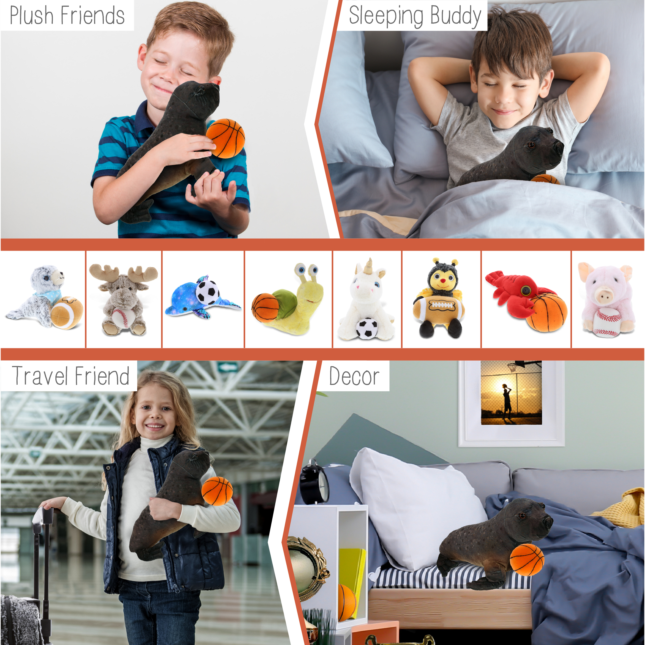 - Included with the Purchase of Adorable Cute Sea Lion Plush – Includes 1 DolliBu Super Soft Wild Collection Sea Lion with a basketball plush, decorated with realistic features of a cute plush animal. The body with a sports gift ball plush makes the plush perfect for cuddles. The sea lion plush toy features details like its characteristic flippers. The sea lion’s eyes make the critter so charming. The plush toy buddy measures 15Lx9Wx6.5H inches.