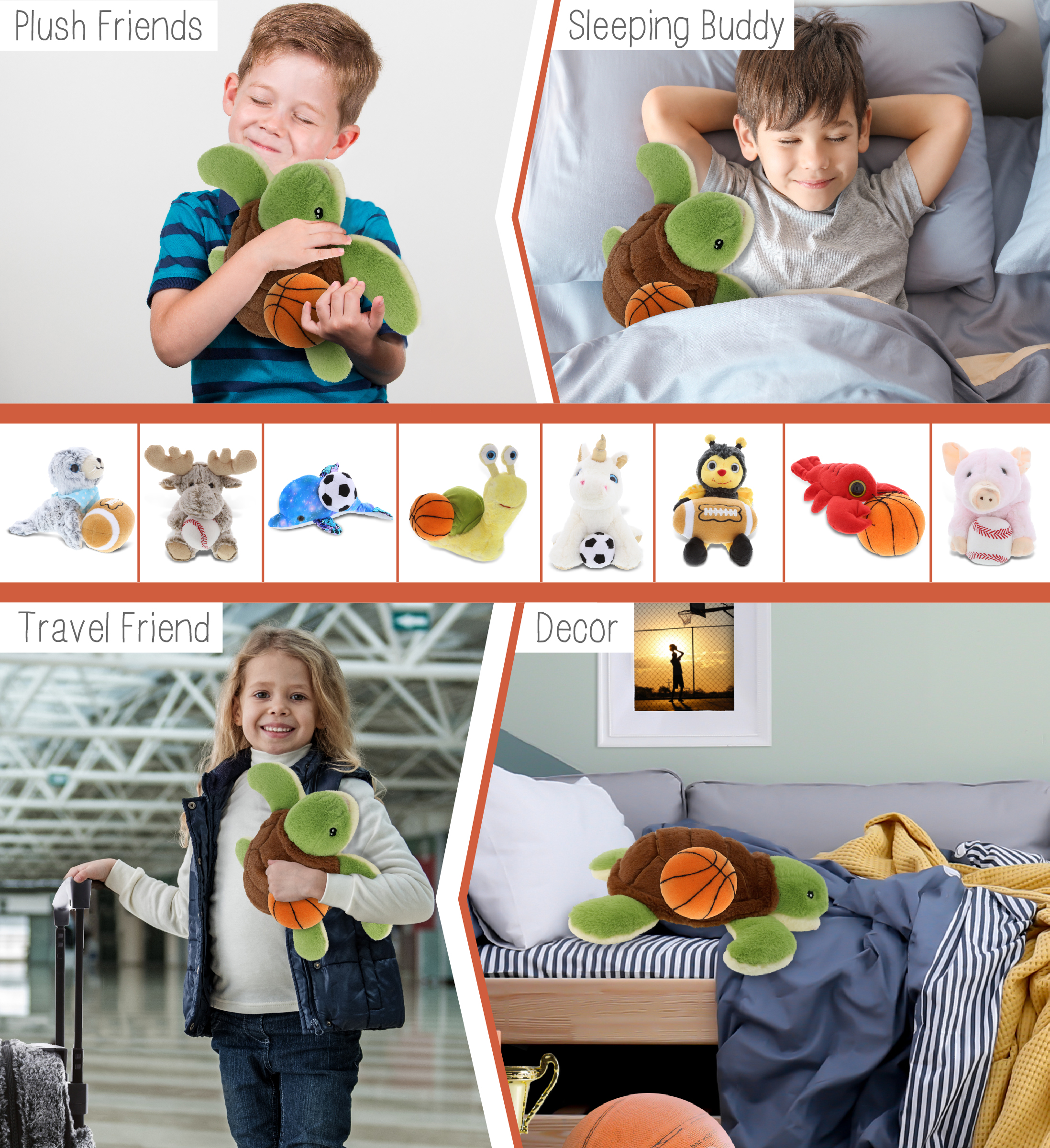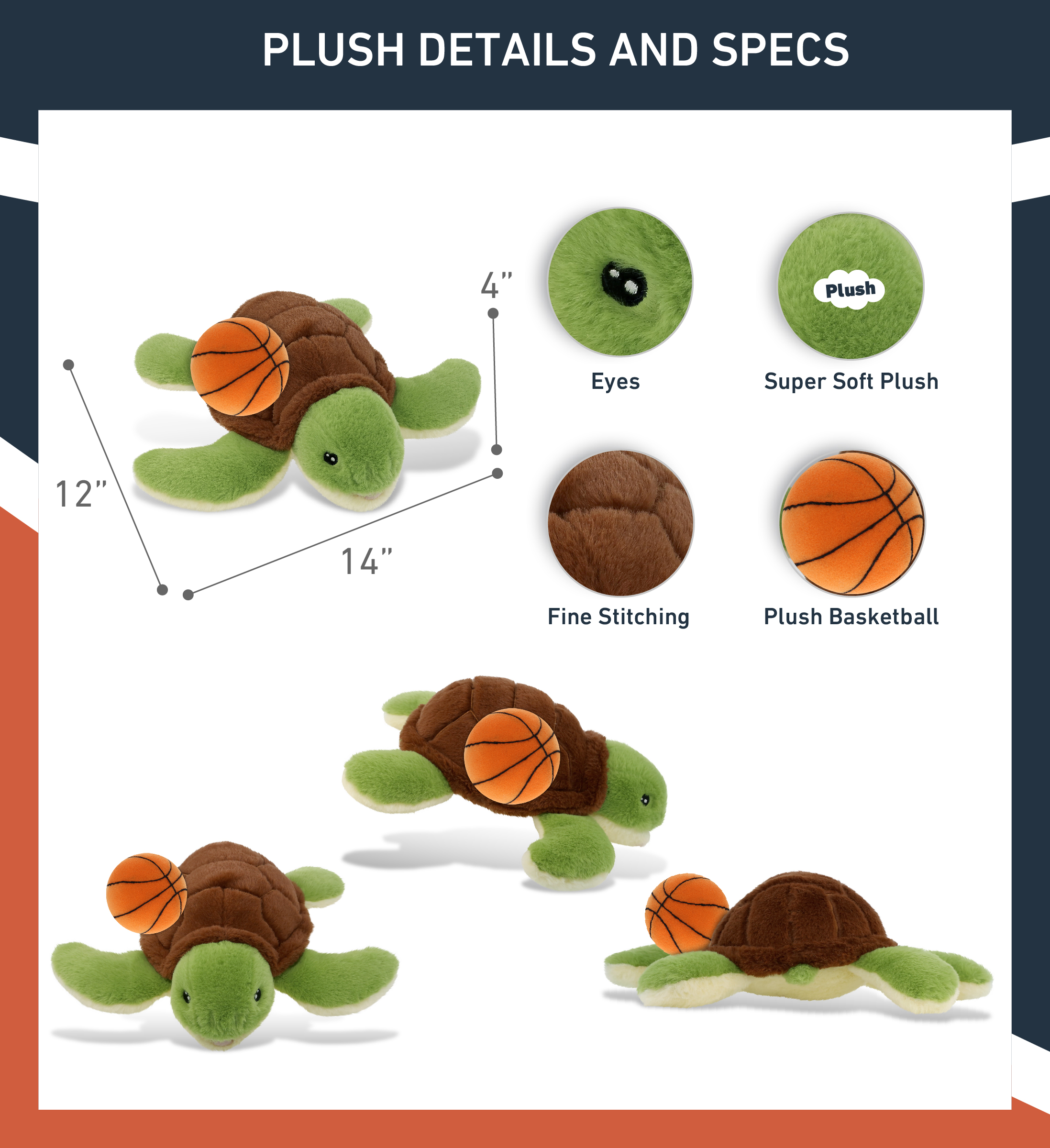 - Included with the Purchase of Adorable Cute Sea Turtle Plush – Includes 1 DolliBu Eco-Friendly Sea Turtle Plush with a basketball plush, decorated with realistic features of a cute plush animal. The body with a sports gift ball plush makes the plush perfect for cuddles. The sea turtle plush toy features details like its characteristic flippers. The sea turtle eyes make the critter so charming. The plush toy buddy measures 12Lx14Wx4H inches.