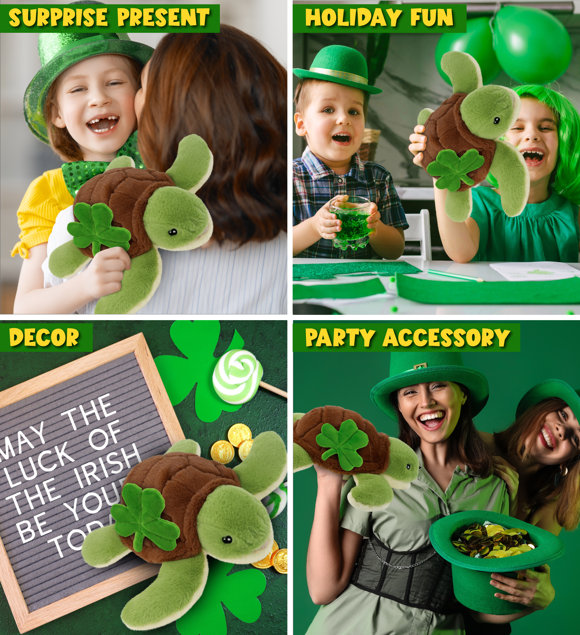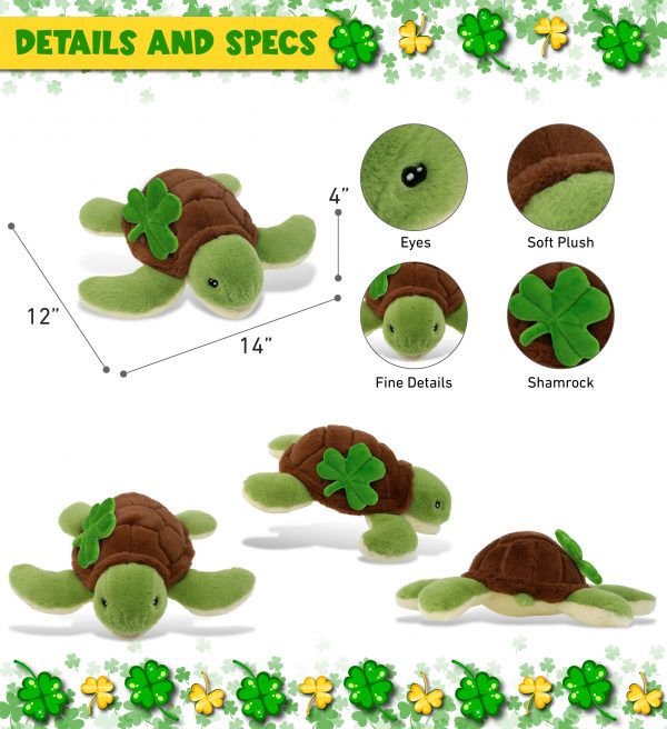 - THE SHAMROCK PLUSH SEA TURTLE IS FOR EVERYONE WHO LOVES STUFFED ANIMALS – The Eco-Friendly Super Soft Sea Turtle toy with an Irish shamrock is for everyone looking for cute stuffed animals to celebrate St Patricks Day. Perfect for Saint Patricks Day decor or cool prizes on St Patricks Day Games. Let the good and fun times roll with this turtle with a green plush shamrock; cute green St Patricks Day Gift to give this festive season.