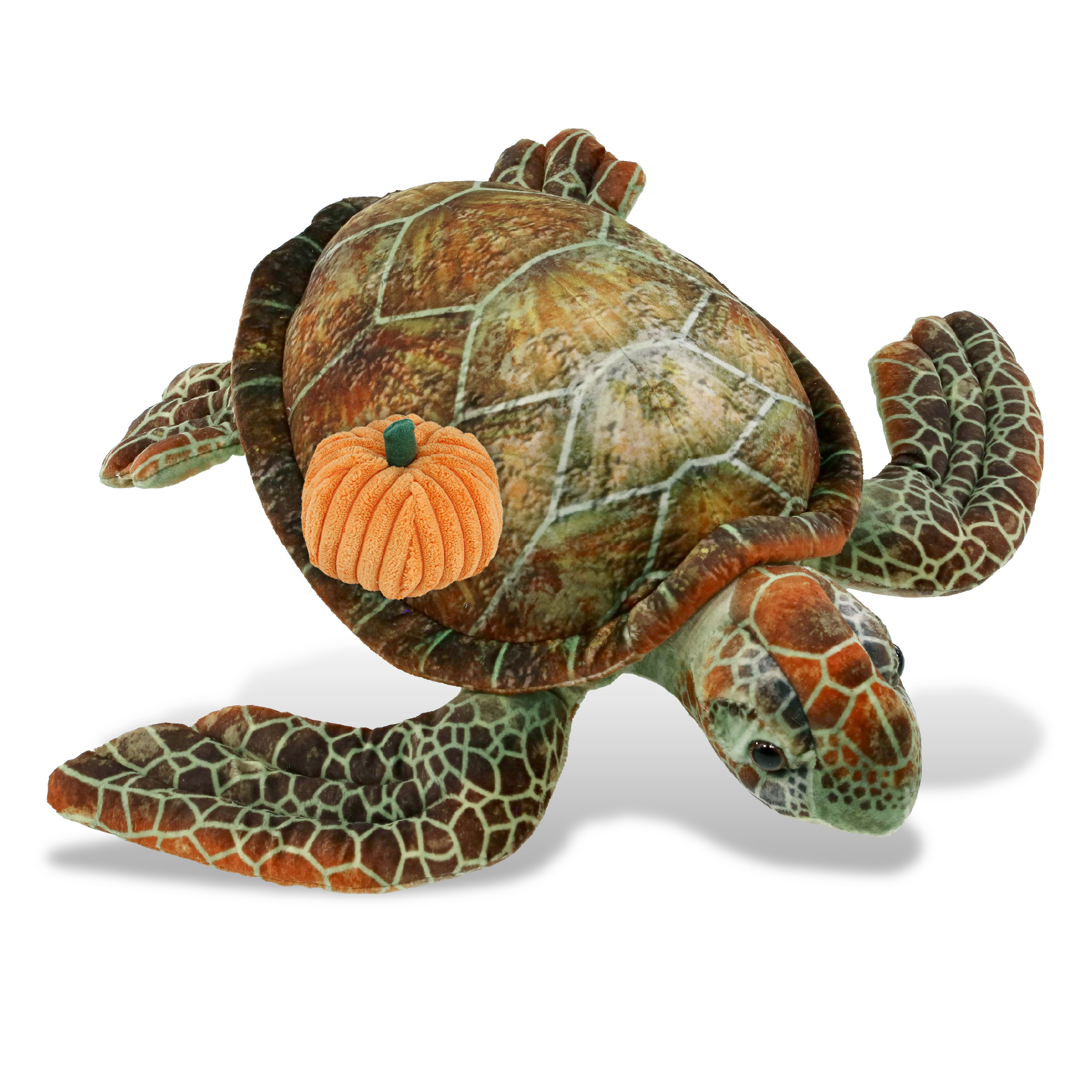 - Included in the Purchase of the Pumpkin Stuffed Sea Turtle Plush – Includes 1 DolliBu Wild Collection Sea Turtle Stuffed Animal Plush to celebrate fall season. The Sea Turtle features realistic details and an orange plush pumpkin decor toy on the plush animals shell. Decorated with unique green plush, realistic design and soft fabric perfect for cuddles and snuggles. Wild Collection Sea Turtle plush animal measures 15Lx18Wx4.6H inches.