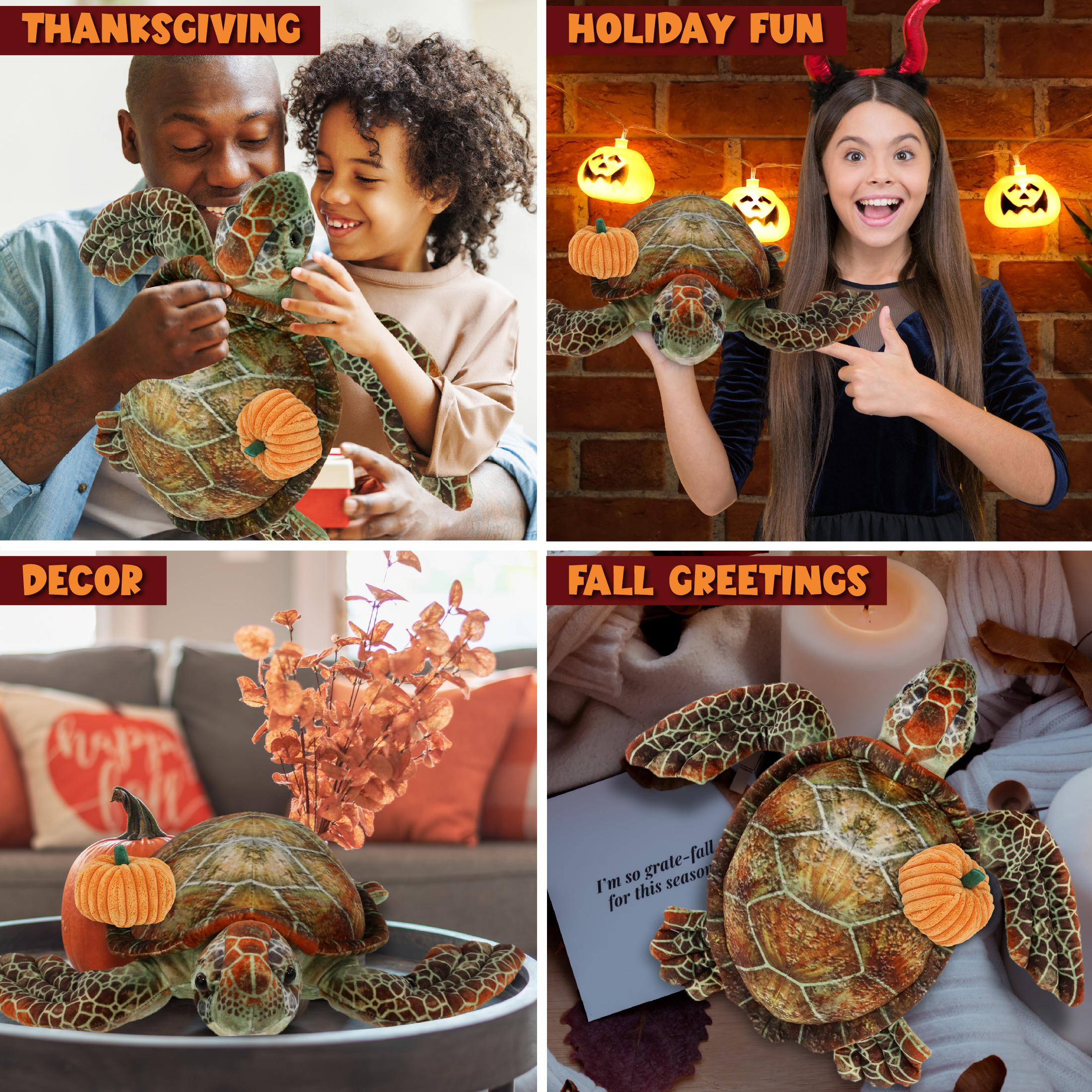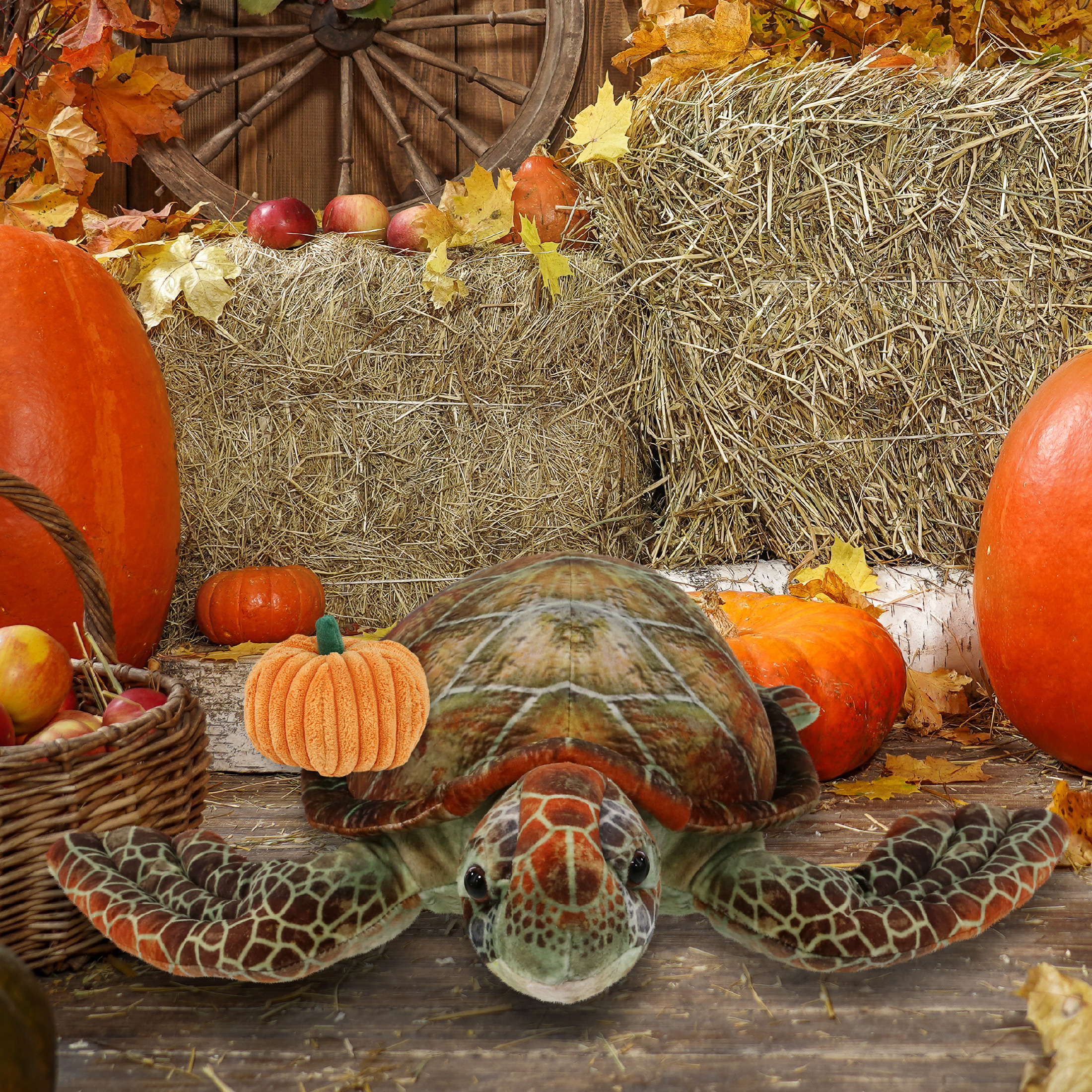 - The Sea Turtle Pumpkin Plush Toy Is for Everyone Who Loves Halloween Toys – The Wild Collection Sea Turtle stuffed animal pumpkin plush toy designed with fall plush theme makes for sweet Halloween kids gifts, babys first Halloween gift and Thanksgiving gifts for friends and family. Welcome spooky month and share the fun of trick-or-treating with loved ones by gifting them a cute custom stuffed animal sea turtle plush doll with a pumpkin soft toy.