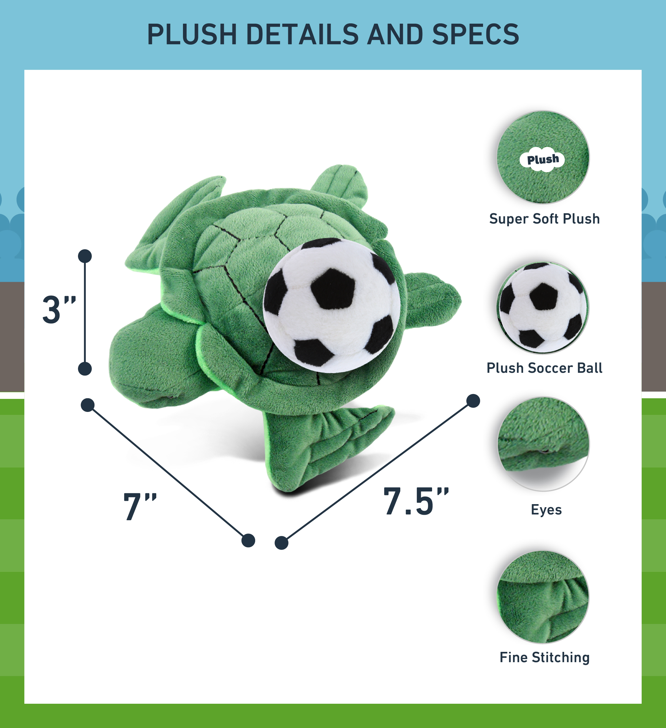 - HIGH QUALITY SUPER SOFT PLUSH STUFFED ANIMAL – The machine-sewn sea turtle toy plush and soccer ball is made of premium-quality polyester, stuffed with soft fluffy polyester fillings. Made with durable and child-friendly features. A cute and snuggly green sea turtle. Cute soft toys designed to be your little one’s best buddies. To maintain fluffy stuffed animals, wash sea turtle plush toys with cold soapy water and allow it to air dry.