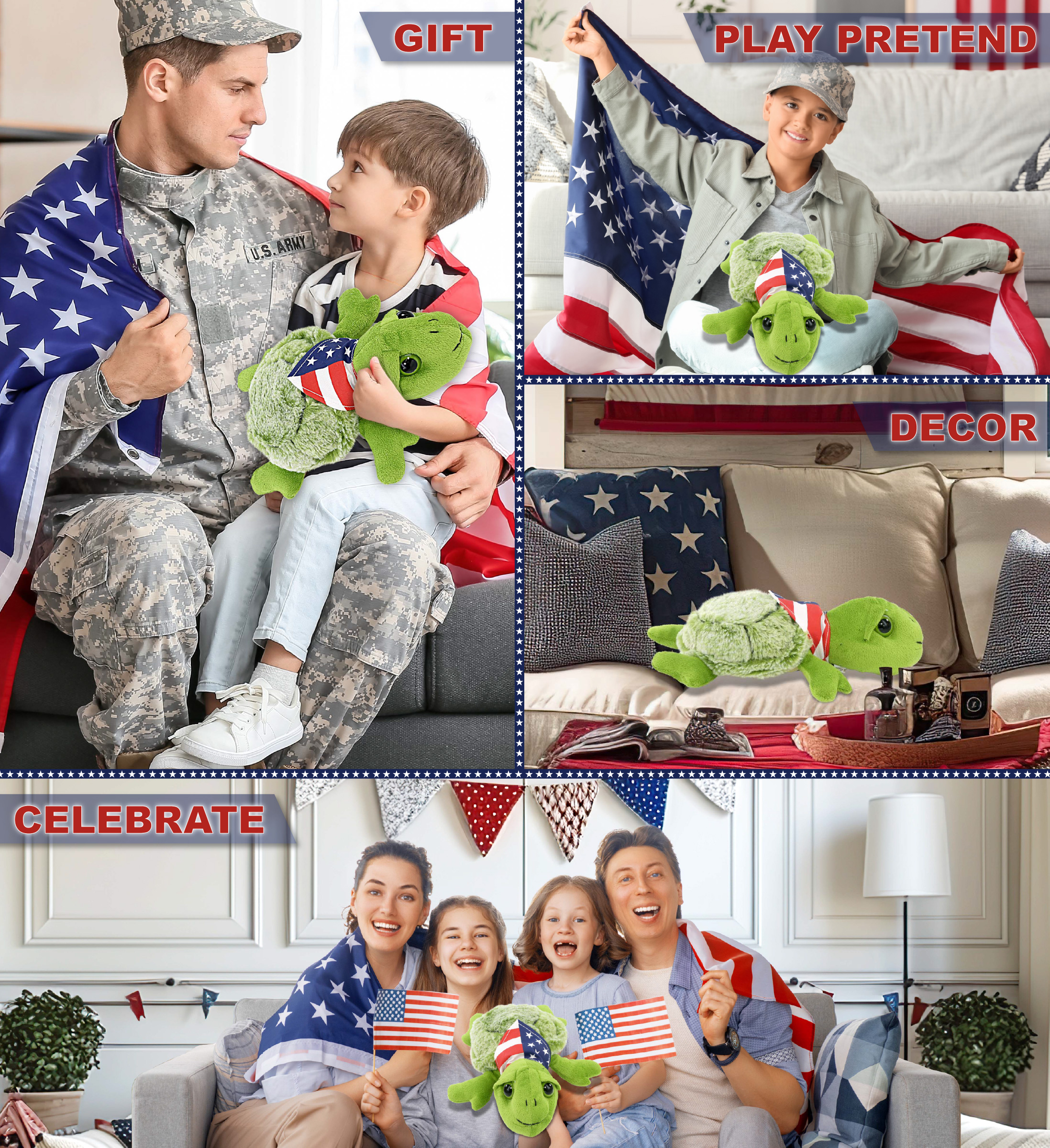 - Perfect Plush Animal for Those Who Love Patriotic Toys for Kids and Adults – Perfect toy sea turtle gift for birthdays, holidays and patriotic events. Ideal for kids, veterans, or anyone who loves unique plushies! Whether you’re shopping for USA teddy collectibles, sea turtle themed gifts, or cute teddy bear plush toys, this sea turtle fits the bill. Great for gifting on Fourth of July, Memorial Day, or any celebration of American pride.