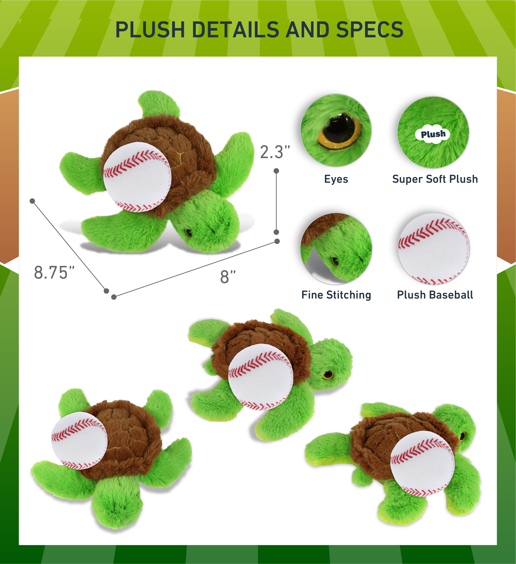 - The Turtle with Baseball Plush Toy Is for Everyone Who Loves Baseball Toys – Anyone will love receiving a cute stuffed toy with cool baseball plush. The girls and boys baseball toy and turtle will be loved by all ages, making it perfect gifts for boys who love baseball. Super soft Big Eye Sea Turtle stuffed animal are timeless gifts for baseball players, or as baseball fan gifts, and for kids who love decorating their rooms with baseball stuff.