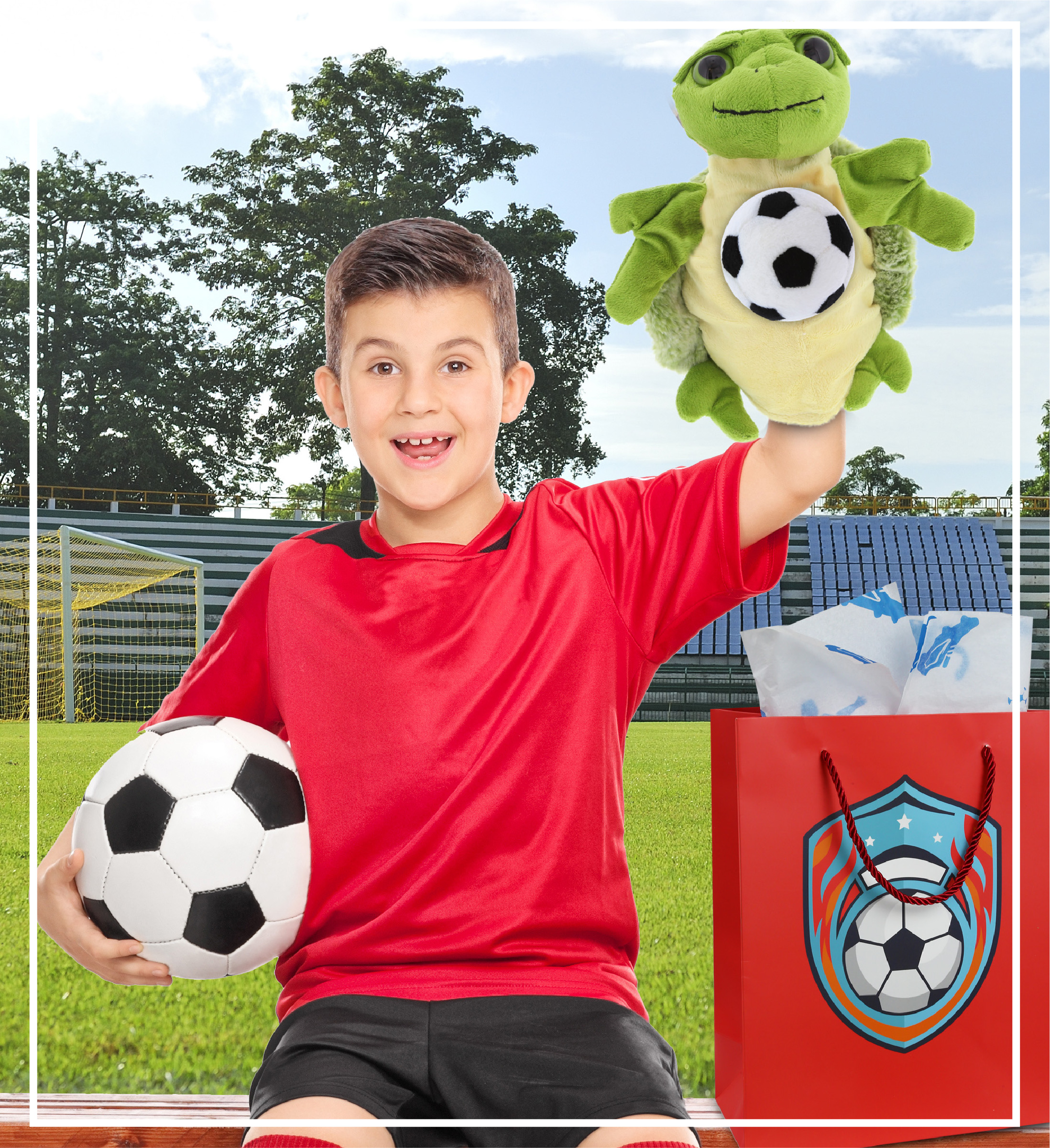 - Personalization, Customization, and Add-On Options – This Super Soft Sports Stuffed Animal Sea Turtle Hand Puppet comes customized with a Soccer Ball Plush. You can personalize your sea turtle hand puppet with the name of your loved one imprinted on the item. You also have the option to add some or all of the cool add-ons to make your gift extra special: 1) Gift Bag; 2) Tissue Paper; 3) Greeting Card.