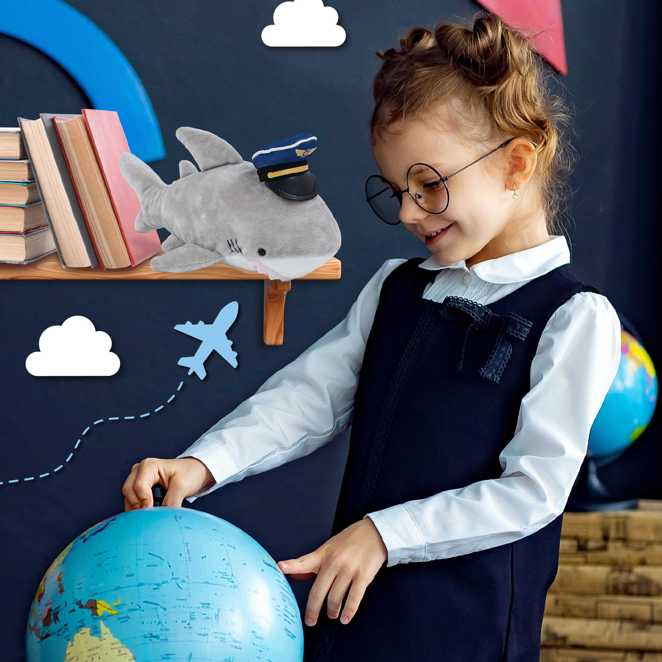 - The Pilot Stuffed Shark Plush is Perfect for Aviation Lovers – Everyone who loves aviation will be thrilled to have a pilot stuffed shark, whether it’s a cute stuffed animal gift or a cute teddy bear plush for aviation-themed collections. Perfect pilot fluffy stuffed animal for flight pretend play and as a pilot shark toy gifts for kids who aspire to be pilots when they grow up. Recommended for ages 3 and up.