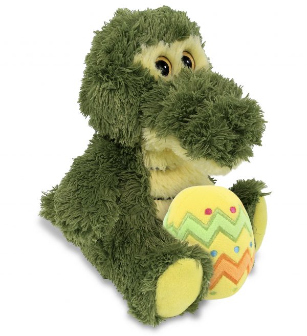 - HIGH-QUALITY EASTER PLUSH FOR GIRLS AND BOYS – Big Eye Sitting Alligator is a stuffed animal Easter plush made of premium 100% polyester. The alligator is covered with green plush, the Easter egg is yellow featuring zig zags and dots in spring color. Stuffed animals for girls and boys crafted with durable materials designed to deliver a Welcome Spring and Easter message. To maintain the alligator plush, wash with cold water and allow to air dry.