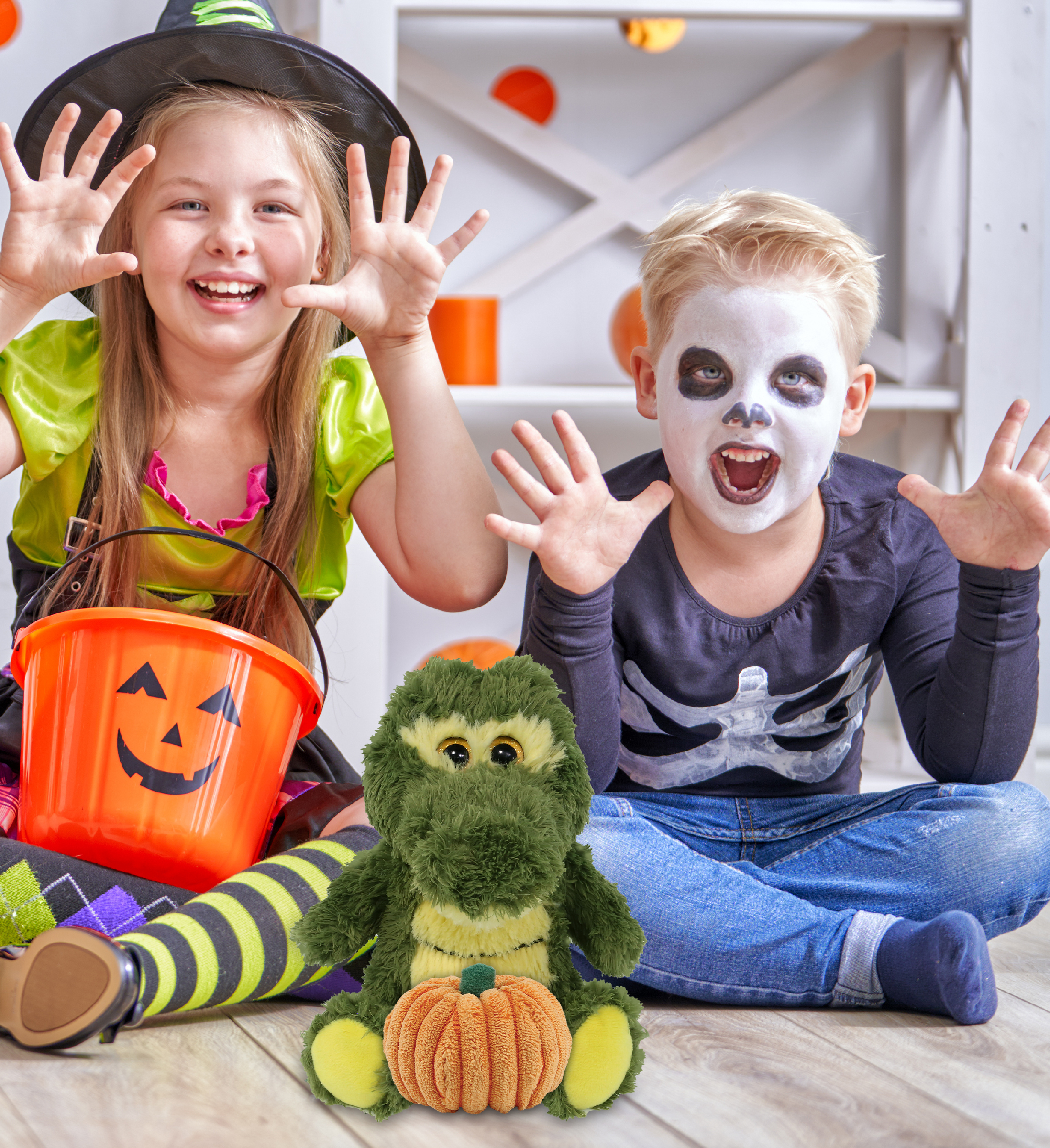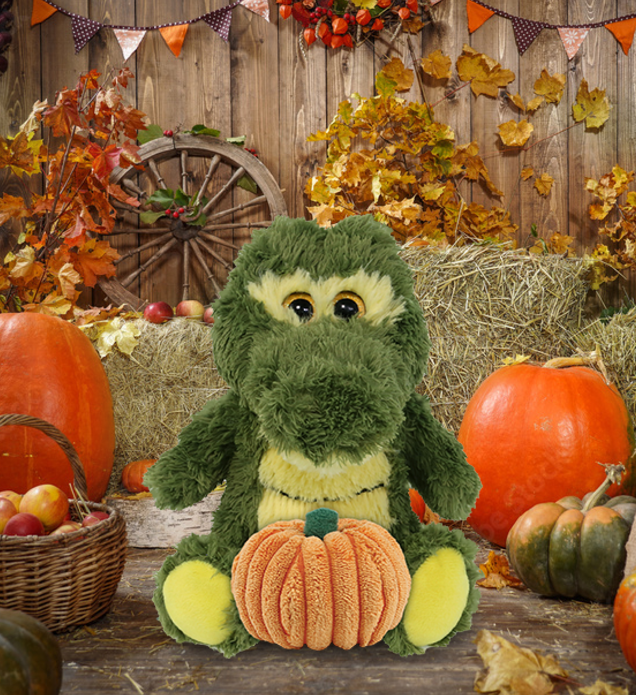 - The Alligator Pumpkin Plush Toy Is for Everyone Who Loves Halloween Toys – The Big Eye Plush Sitting Alligator stuffed animal pumpkin plush toy designed with fall plush theme makes for sweet Halloween kids gifts, babys first Halloween gift and Thanksgiving gifts for friends and family. Welcome spooky month and share the fun of trick-or-treating with loved ones by gifting them a cute custom stuffed animal gator plush with a pumpkin soft toy.
