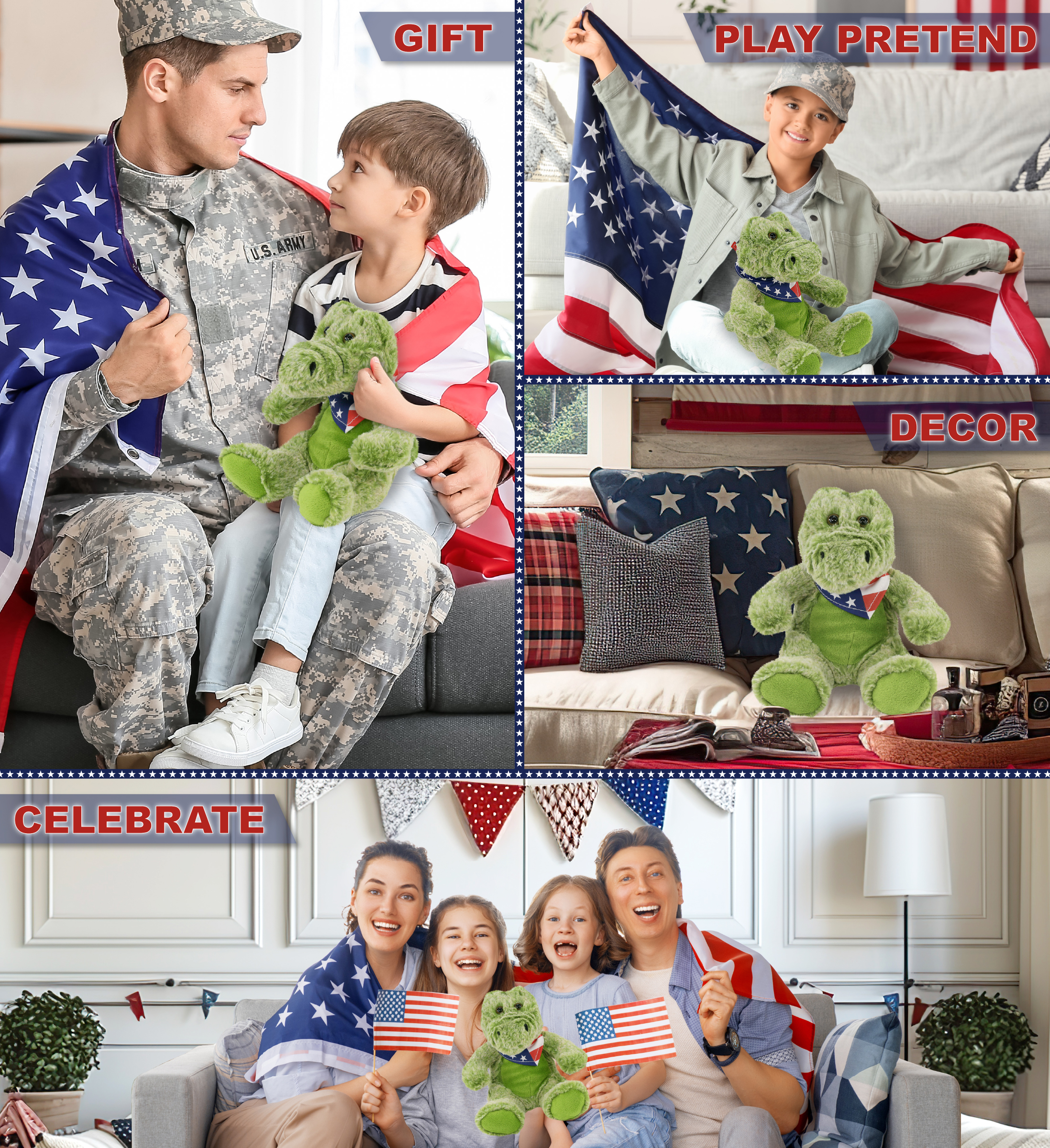 - Perfect Plush Animal for Those Who Love Patriotic Toys for Kids and Adults – Perfect toy alligator gift for birthdays, holidays and patriotic events. Ideal for kids, veterans, or anyone who loves unique plushies! Whether you’re shopping for USA teddy collectibles, alligator themed gifts, or cute teddy bear plush toys, this alligator fits the bill. Great for gifting on Fourth of July, Memorial Day, or any celebration of American pride.