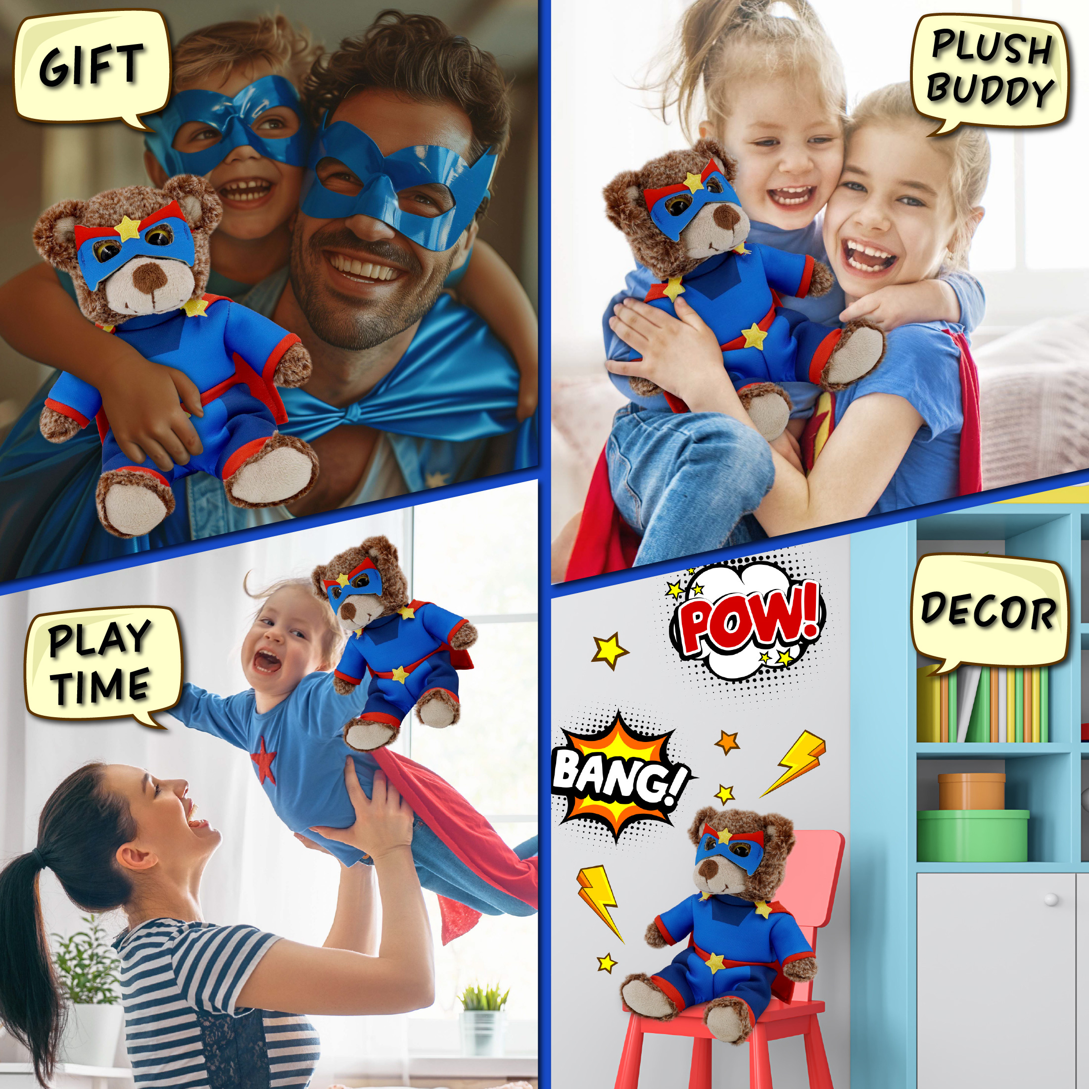 - Perfect for Everyone Who Loves Superheroes – Everyone who loves customizable stuffed animal toys will be thrilled to have a super hero stuffed bear. Whether it’s a cute stuffed animal gift or a superhero teddy for a super hero themed room, this plush makes a thoughtful surprise. Ideal for birthdays, Halloween, or everyday fun. Perfect to bring along on pretend-play save-the-day adventures.