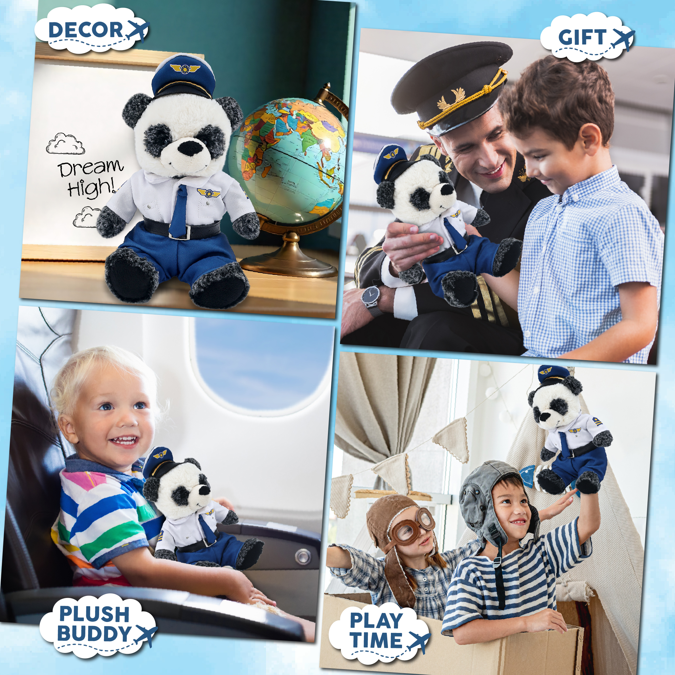• The Pilot Stuffed Sitting Panda Plush is Perfect for Aviation Lovers – Everyone who loves aviation will be thrilled to have a pilot stuffed bear, whether it’s a cute stuffed animal gift or a cute teddy bear plush for aviation-themed collections. Perfect pilot fluffy stuffed animal for flight pretend play and as a pilot panda toy gifts for kids who aspire to be pilots when they grow up. Recommended for ages 3 and up.