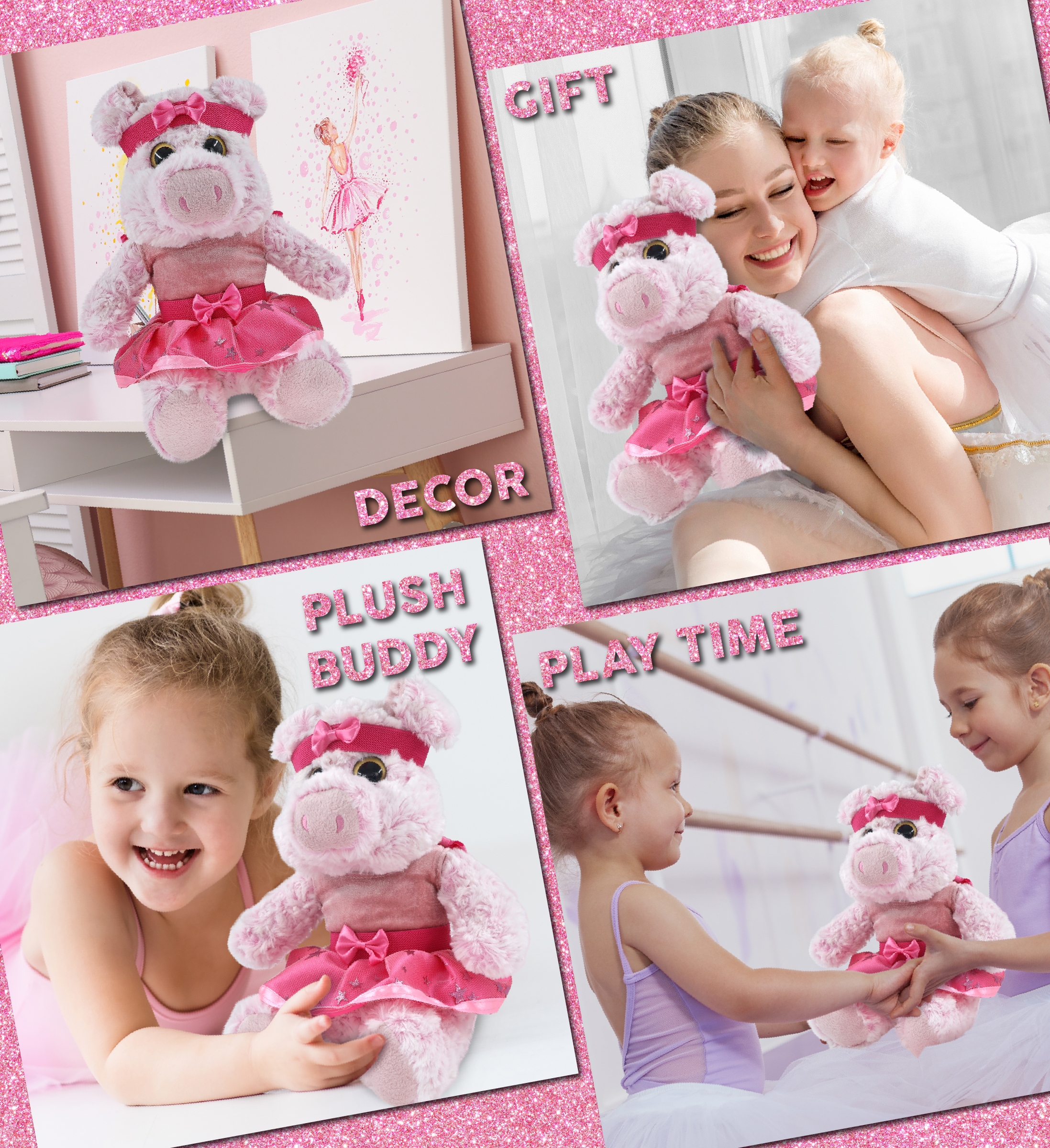 - Perfect Ballerina Stuffed Animal Pig for Those Who Love Ballet and Dance – Whether you’re into farm life plush animals or love ballet, this pig ballerina stuffed doll bridges both worlds. Ideal pig toys for kids and adults who love farm animals and ballerina stuffed animal dolls. Perfect addition to your display of ballet dolls and ballet decor and a great ballerina gift for your loved ones who love collecting ballerina accessories.